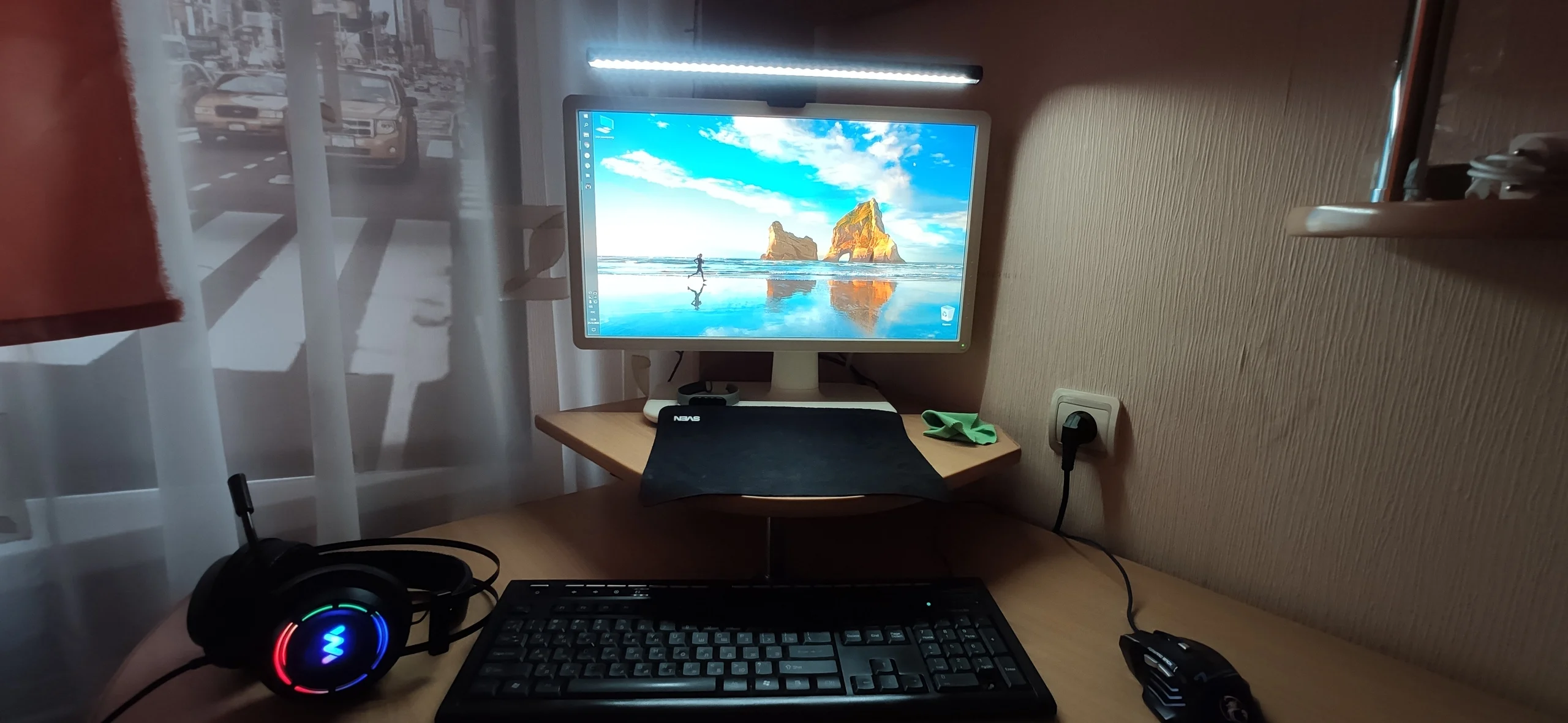 Очень доволен покупкой. Высокое качество материалов, презентаций и обслуживания доставки. Я заказал его в субботу и с понедельника по утрам, когда был дома. Три оттенка света и регулируемая интенсивность. Предназначен для мониторов, а не для ноутбуков, так как он тяжелый.
