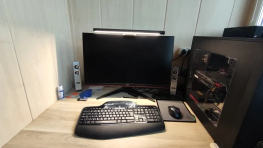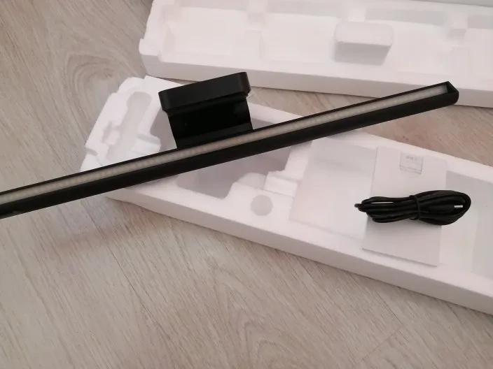 El aspecto y acabado de la barra de luz es espectacular. Proyecta una cantidad de luz abundante (regulable) y se puede configurar para que emita luz cálida. El ángulo de la luz también es regulable y es adecuado para iluminar la mesa pero no los ojos del usuario (no molesta). La pinza ajustable de sujección tiene recubrimiento de goma para un mejor agarre. La barra es bastante pesada para su tamaño, de modo que aunque la pinza no se ajuste bien al borde del monitor (a causa de un soporte VESA cercano al borde en mi caso), la luz se sujetará bien por su propio peso. El paquete incluye un cable "USB-A macho a USB-C macho" suficientemente largo como para conectarlo a un ordenador o cargador USB (no incluido) que esté en la mesa, pero no sé si sería suficientemente largo para llegar a un cargador enchufado en el suelo. Estoy muy contento con la compra y estoy considerando comprar otra para un segundo monitor.