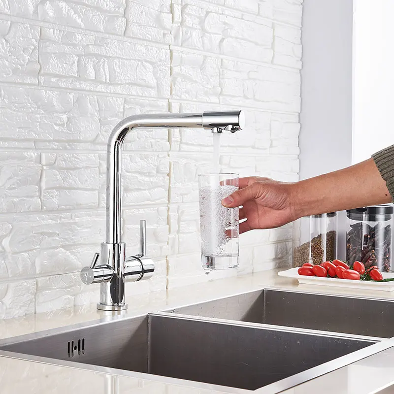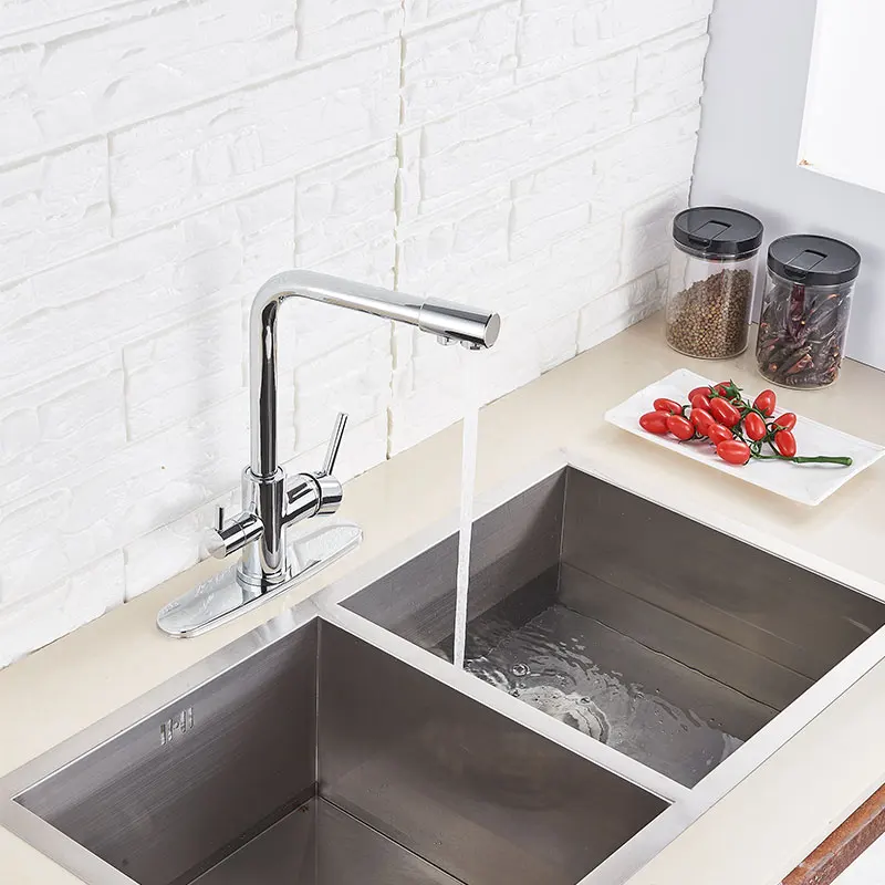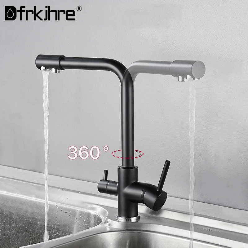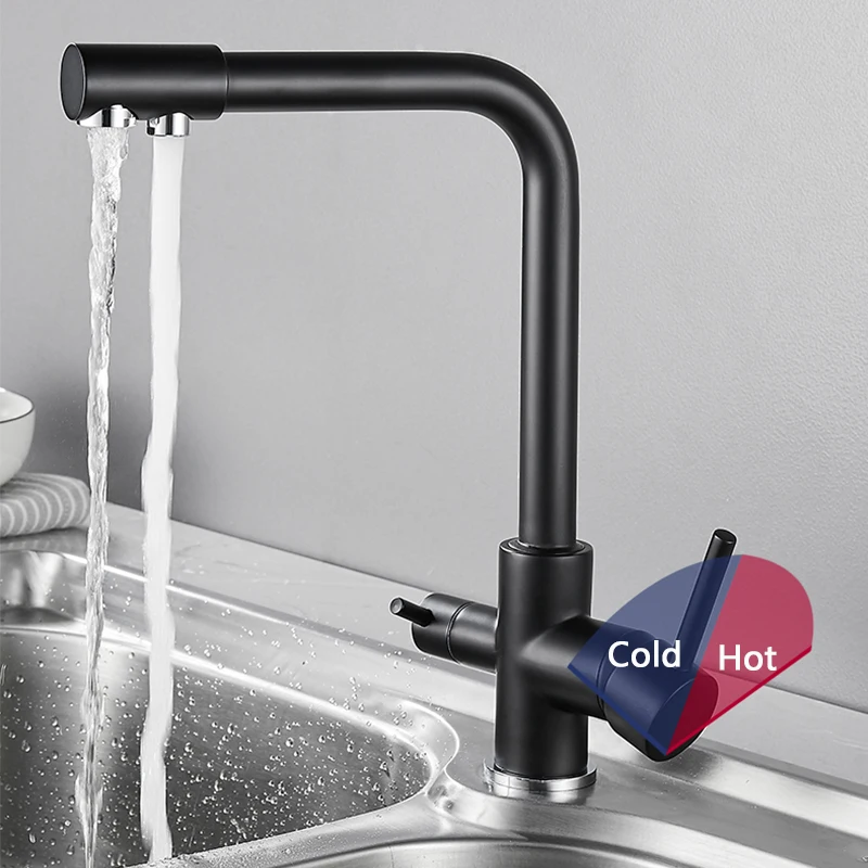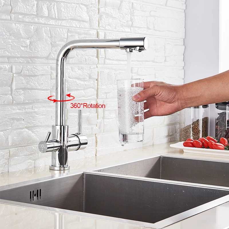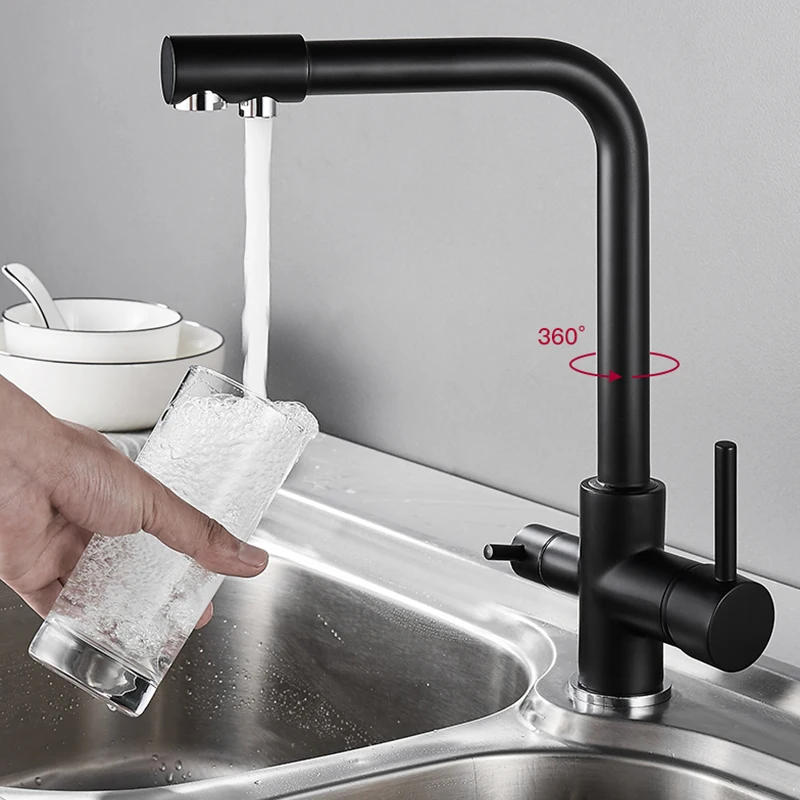 Смеситель для кухни с фильтром и двойной ручкой, Поворот на 360 градусов, 3-ходовой фильтр для горячей и холодной питьевой воды