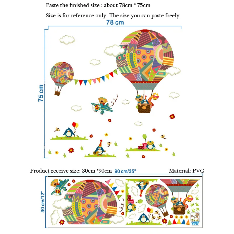 Мультяшные животные воздушные шары настенные Стикеры для спальни детской комнаты фоновая роспись домашний декор художественные наклейки для детской комнаты