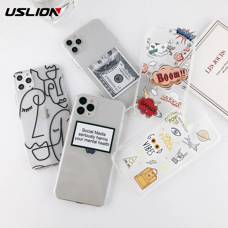USLION Забавный мультяшный абстрактный Прозрачный чехол для телефона iPhone 11 Pro Max X XR Xs Max 6 6S 7 8 Plus мягкие модные чехлы из ТПУ