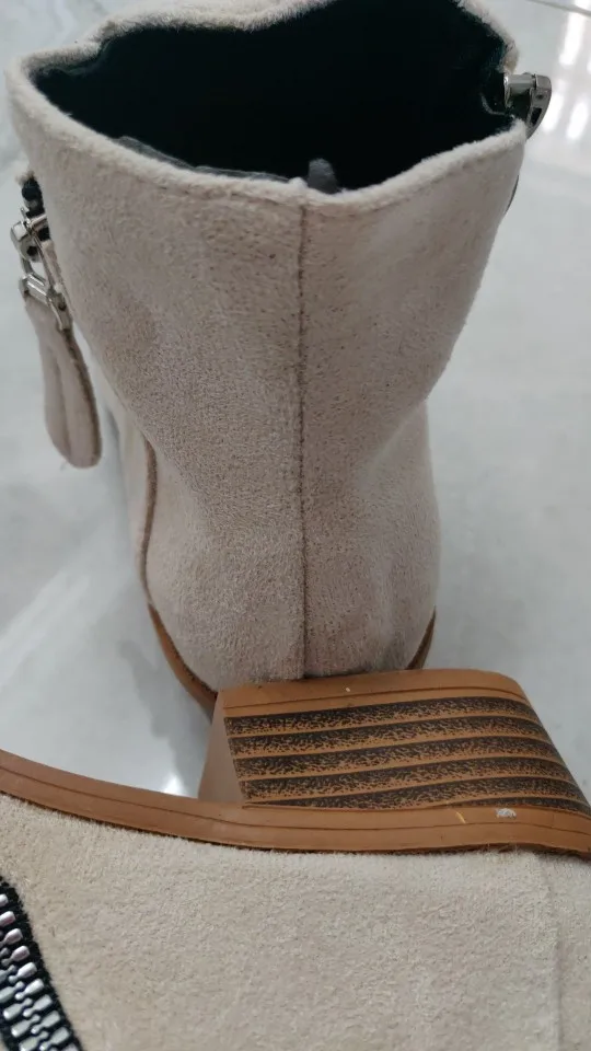 Цвет на много светлее, чем на картинке. Есть очень сильный запах. И ещё растегнуть молнии на обуви у меня так и не получилось. Не думаю что буду их носить.
