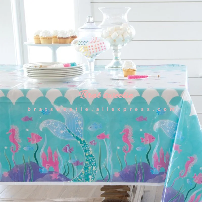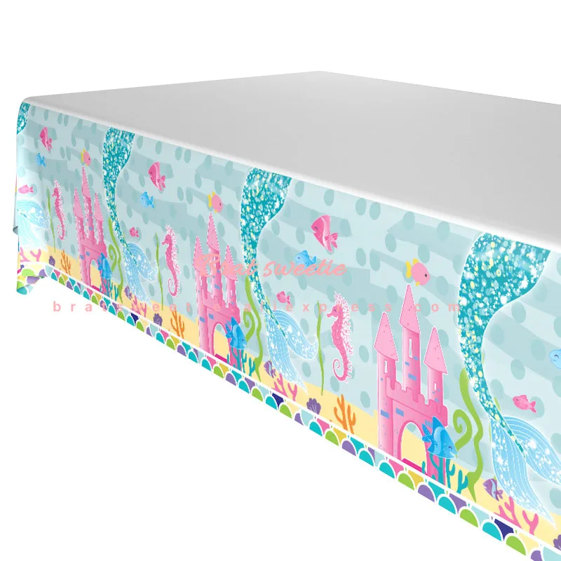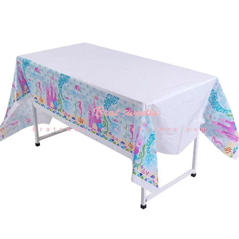Одноразовая скатерть с хвостом Русалочки для девочек, праздничные одноразовые украшения для дня рождения, вечевечерние, для детей