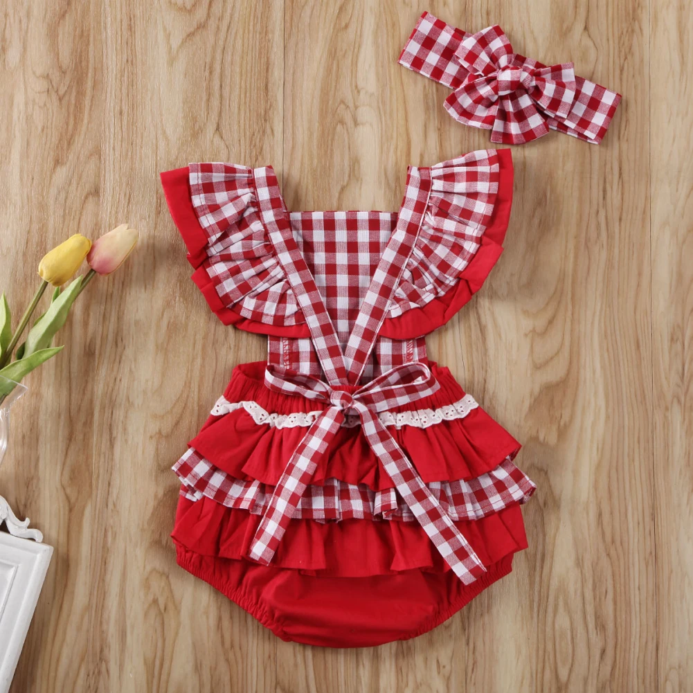 Комбинезоны для новорожденных девочек, повязка на голову, 2 шт., с открытой спиной, с оборками на рукавах, пледы, Детский костюм с принтом, комбинезон, костюм от солнца