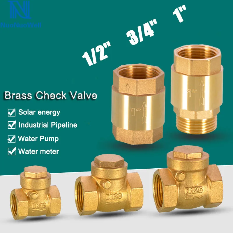 Обратный пружинный клапан NuoNuoWell BSP, латунный односторонний обратный клапан 12, 34, 1 дюйма, для воздуха, воды, масла и газа
