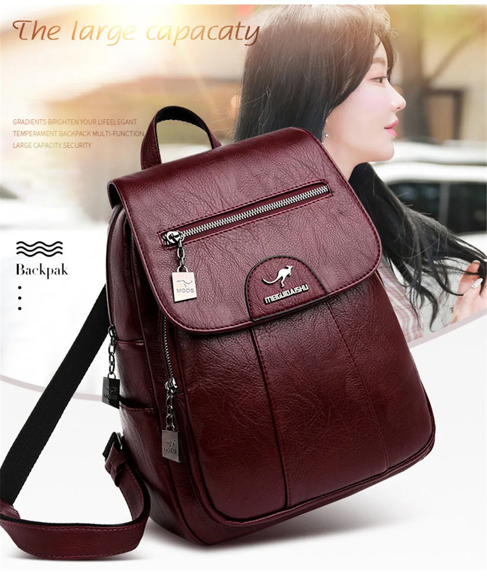 2022 женские кожаные рюкзаки, высокое качество, Женский винтажный р...