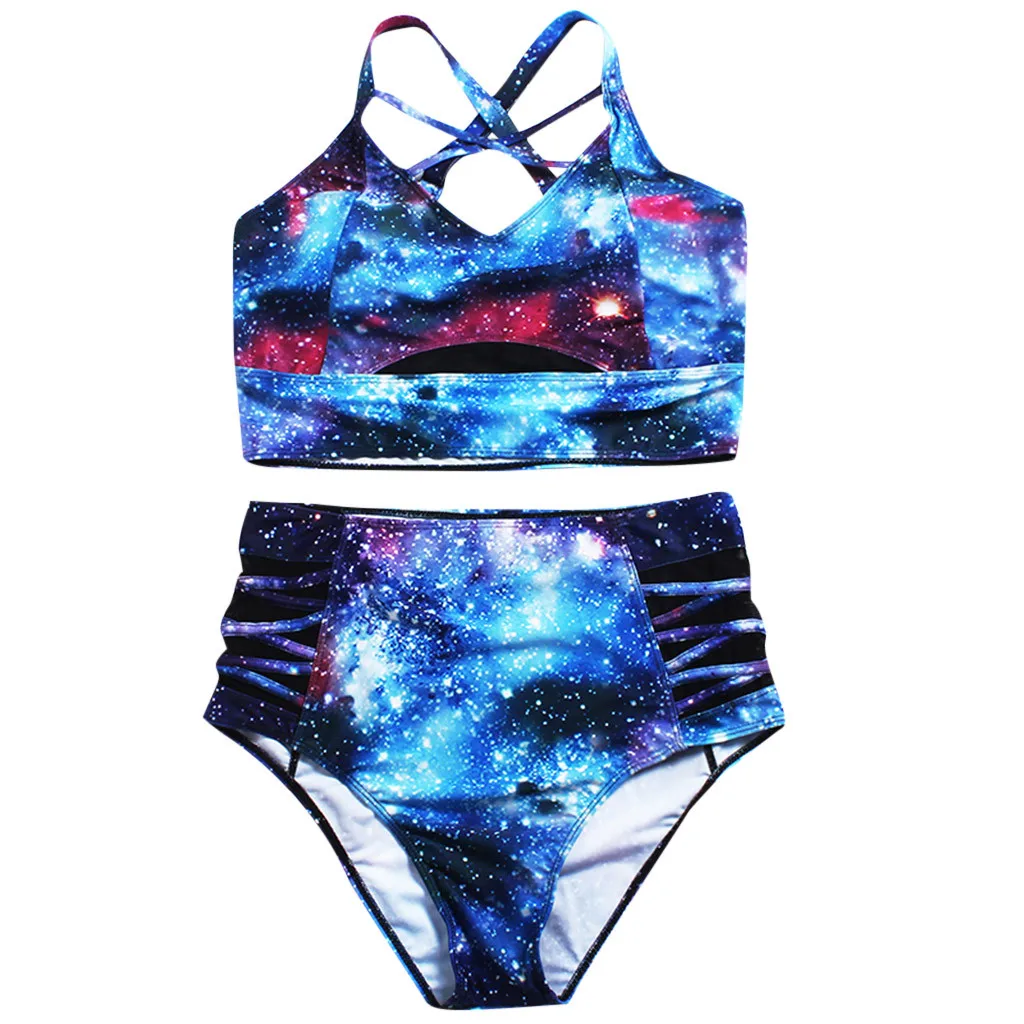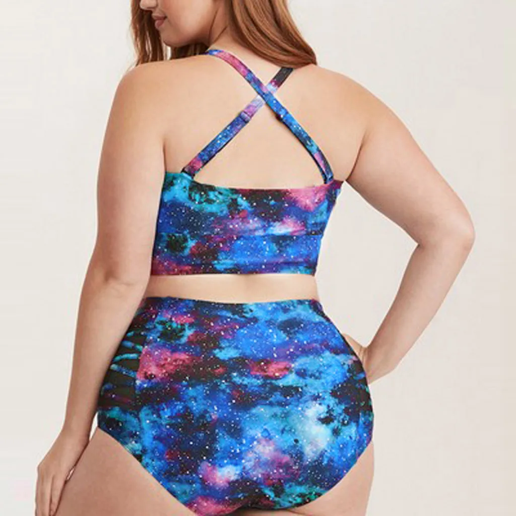 Женский раздельный купальник, комплект бикини с открытой спиной и принтом пуш-ап, размера плюс