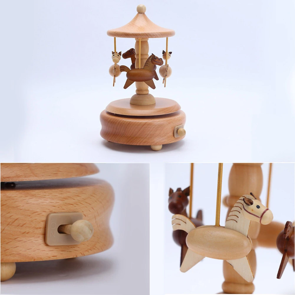 Музыкальная шкатулка в виде карусели, деревянная музыкальная шкатулка, деревянные поделки, ретро подарок на день рождения, винтажные аксессуары для украшения дома, подарок на день Святого Валентина