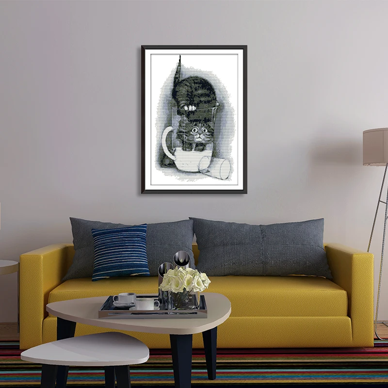 Joy Sunday китайские наборы для вышивки крестом Кот и кофе DMC 14CT 11CT хлопчатобумажная ткань для отеля Декор для дома оптовая продажа с завода