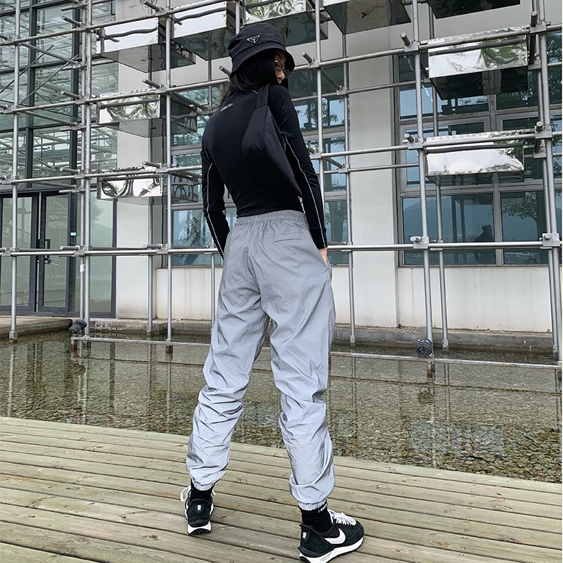 Штаны Женские Светоотражающие, свободные, неоновые, в Корейском стиле