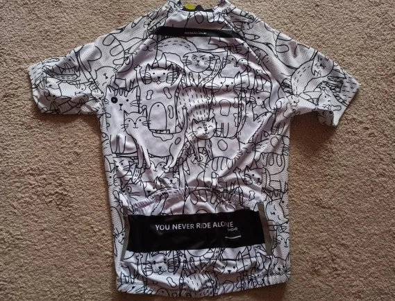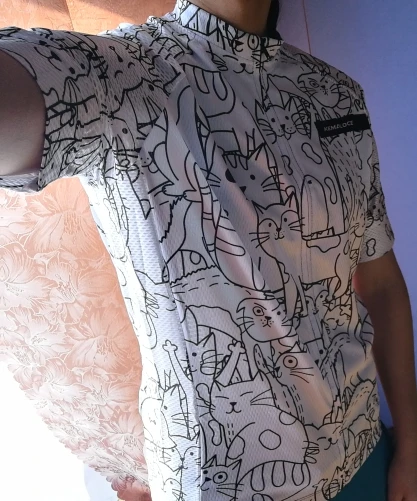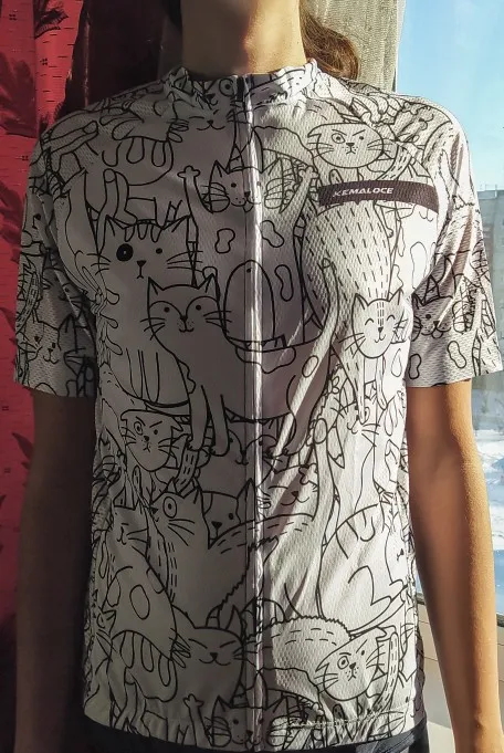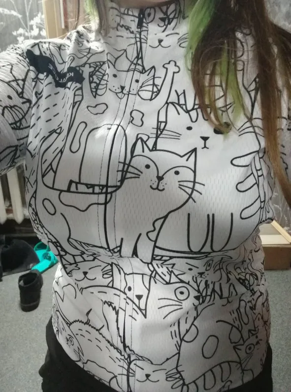 Это второй раз заказа. Я очень люблю эту дизайнерскую толстовку с котом. Качество продукции достаточно хорошее для цены. Потому что я не в гонке, а просто на выходных, не хочу тратить $50 или 100 на Джерси ^_^ Я 179 см 64 кг, и до этого L. Товар немного свободный и соответствует размеру M. Очень хорошо сидит. Спасибо.