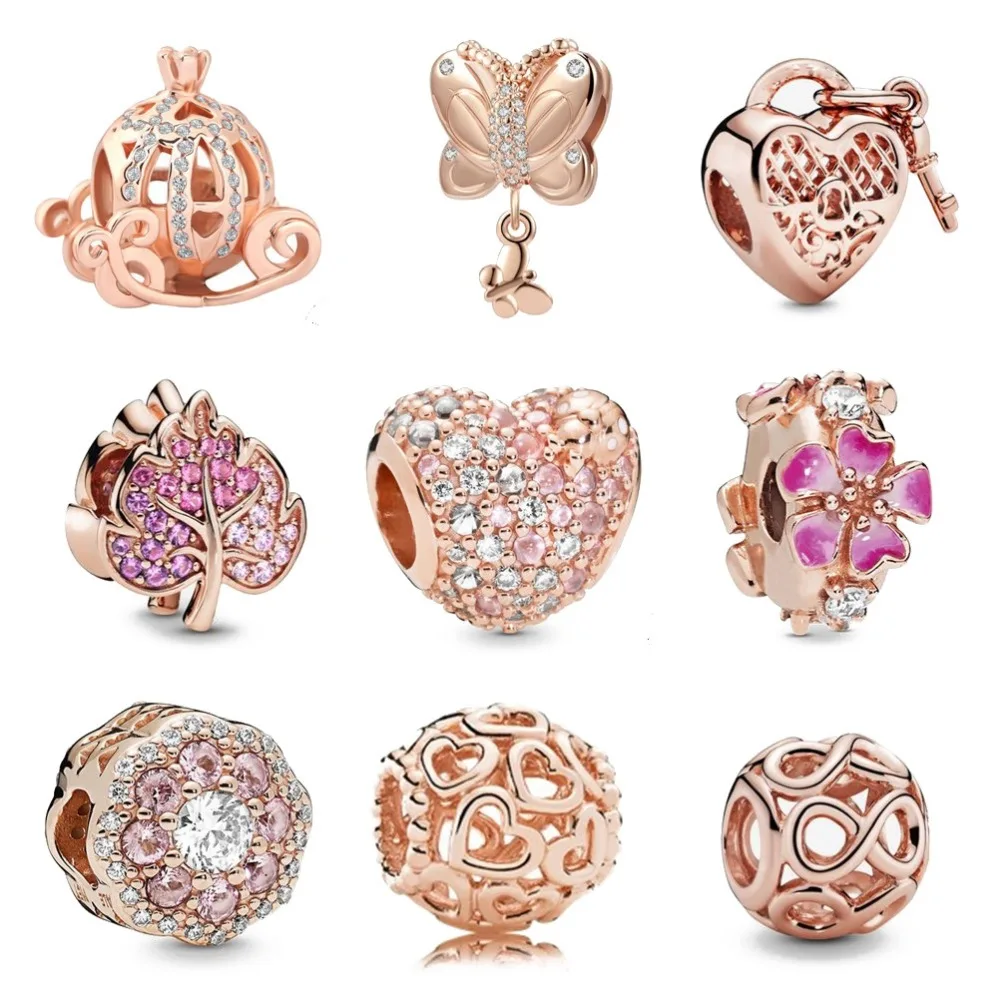 Подлинный оригинальный 925 шарма стерлингового серебра кулон из бисера Spacer клип Подвески из розового золота, соответственные Пандоре обаятельные браслеты для женщин, сделай сам, ювелирное изделие