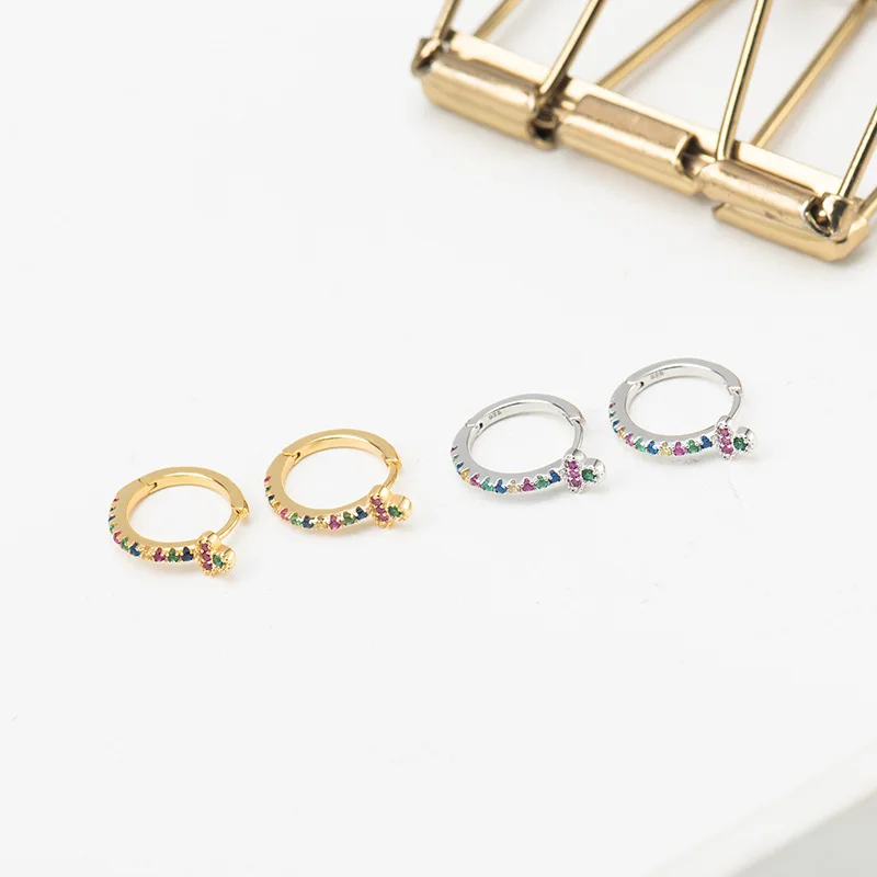 Женские маленькие серьги-кольца WTLTC, из стерлингового серебра 925 пробы, с разноцветными фианитами