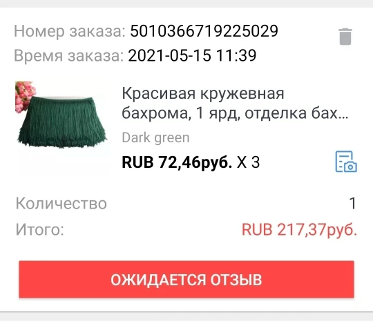 Не рекомендую продавца. Бахрома хорошая. Доставка во время. Но цвет совершенно другой. Я заказала темно зелёного, пришла золотого. Открыла спор на половину суммы. Продавец отказал. Деньги мои потрачены, использовать бахрому не могу. Не рекомендую.
