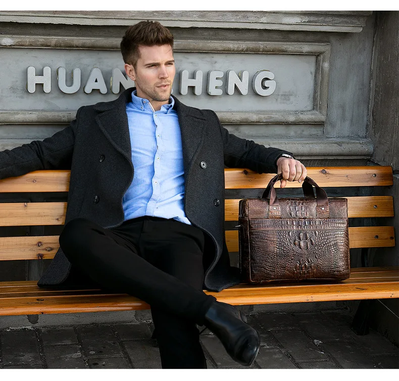 Мужской портфель с крокодиловым узором, мужская деловая сумка-тоут,...