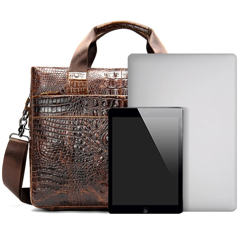 Сумка для ноутбука из натуральной кожи, крокодиловый узор