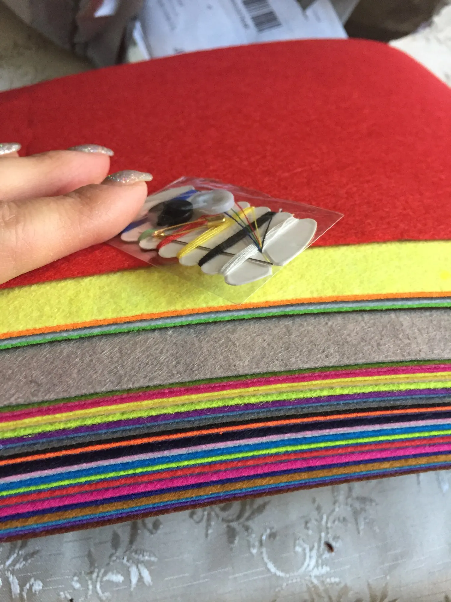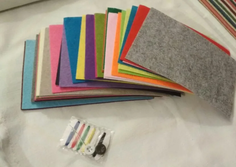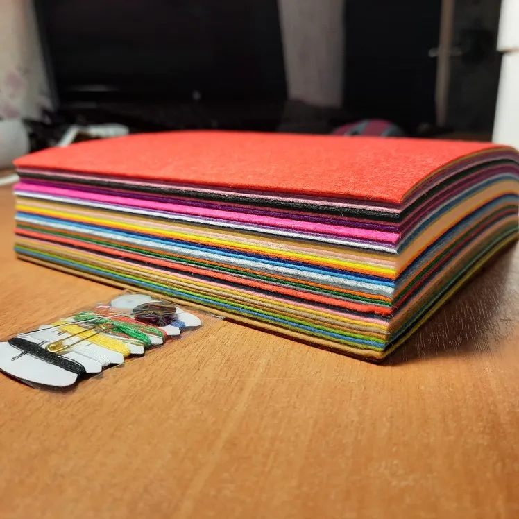 Фетр отличного качества. Довольно жёсткий, то что надо для значков. Цветов 40 штук, все яркие, камера плохо передаёт. Товаром довольна, отправка и доставка была быстрой, меньше месяца в мою грушь пришло. Продавец в подарок положил набор ниток, пуговец, иголку и маленькую булавку.