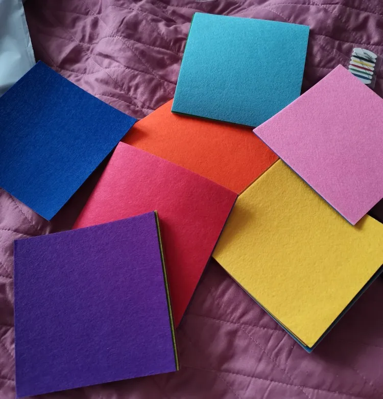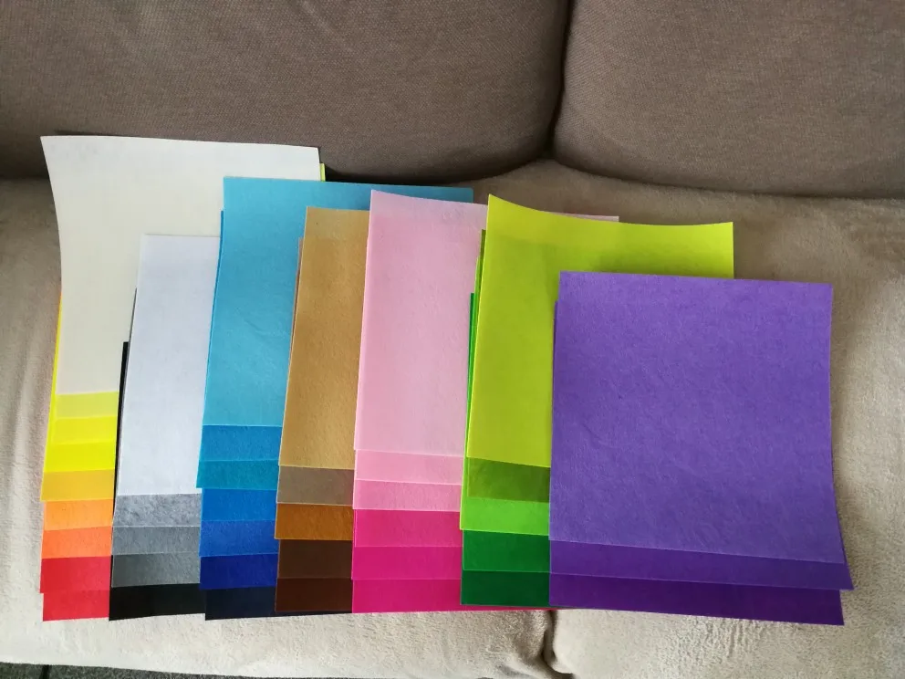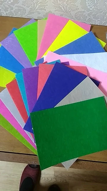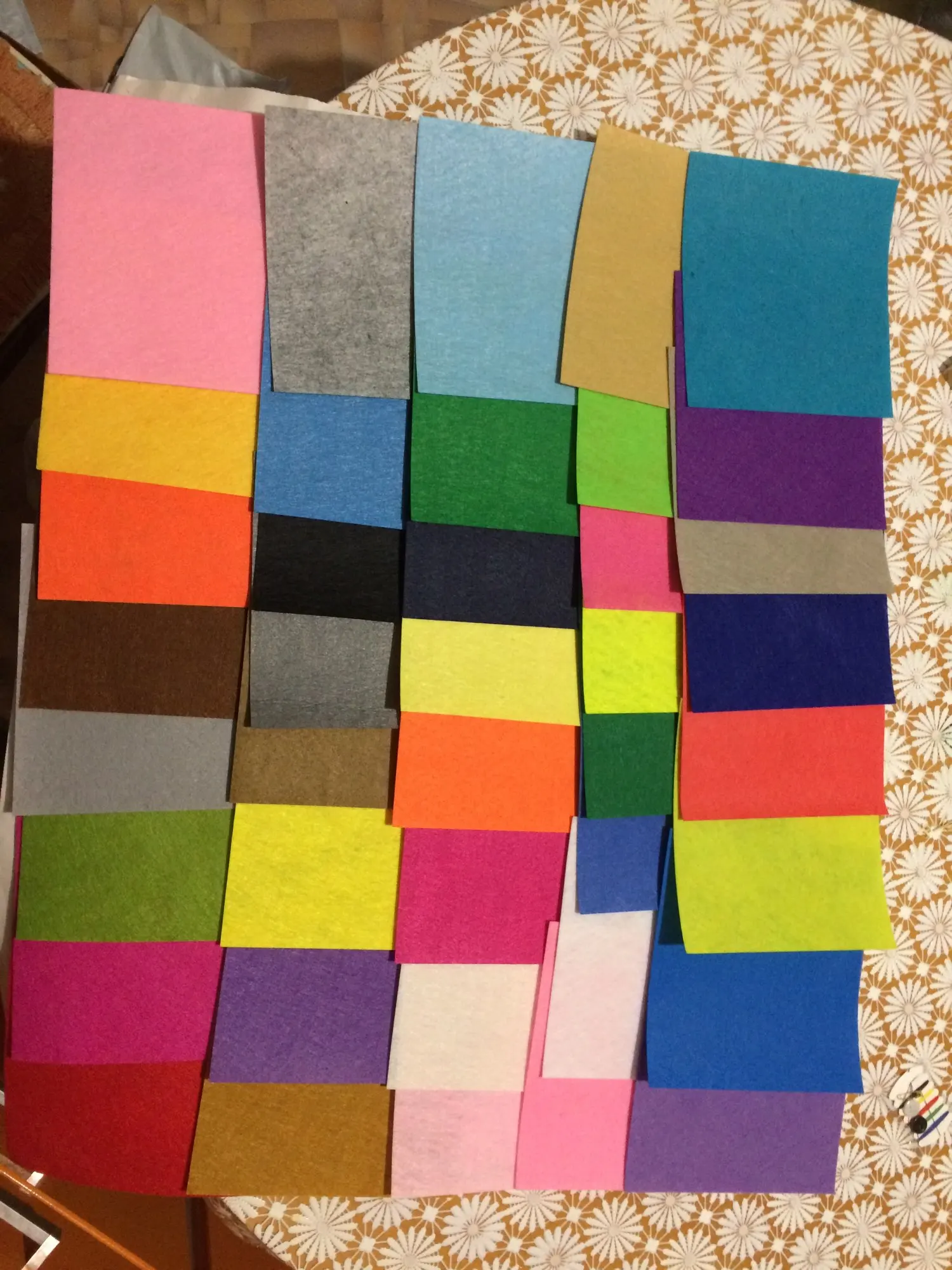 Мягкая на ощупь войлочная ткань, 40 различных цветов. Посылка прибыла в течение 14 дней, так что отличное время. Они 30x30 и совсем не пахнут. Определенно рекомендую продавцу! При необходимости я буду заказывать больше. Маленький подарок был добавлен, спасибо
