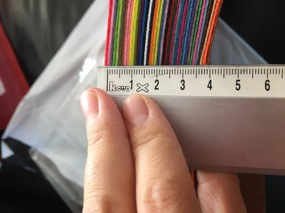 Очень хорошо Хорошее качество. Все цвета разные. Очень яркий. Достаточно толстый для всех видов рукоделия. Мы использовали для изготовления небольших украшений для рождественской елки. Дети могут легко работать с ним. Очень доволен. Рекомендуется.