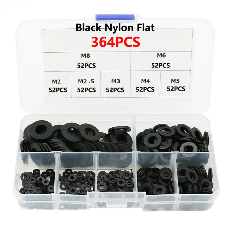 364 * черные нейлоновые плоские шайбы с коробкой