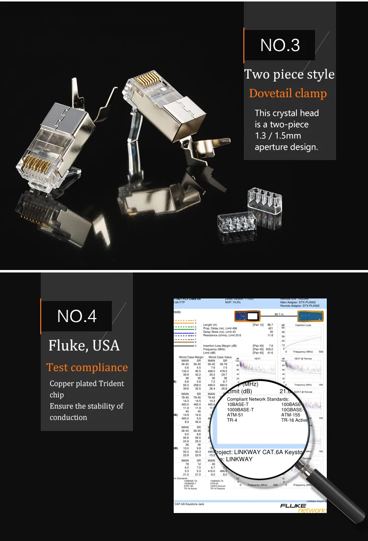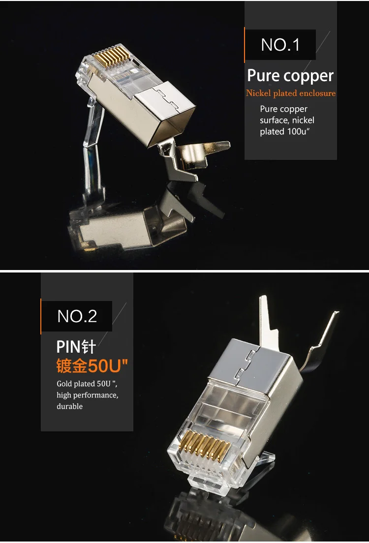RJ45 Cat6A Cat7 Cat8 Модульные вилки экранированный металлический зажим кабеля типа с 1,3 мм 1,5 мм Большой загрузочный бар для больших твердых проводов