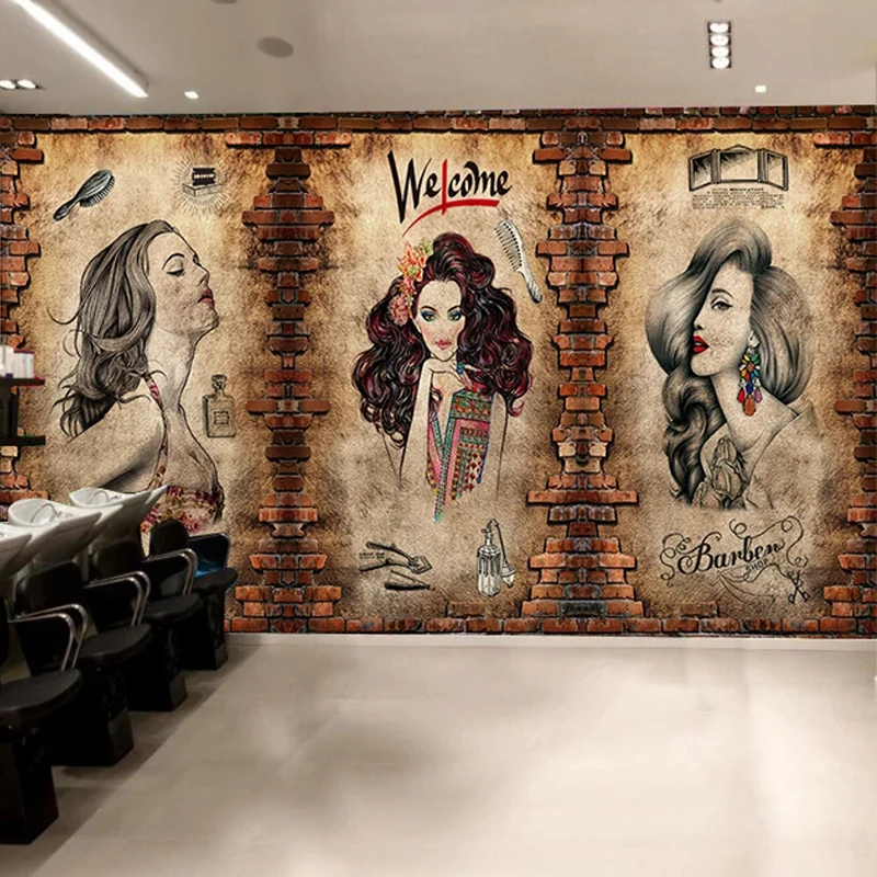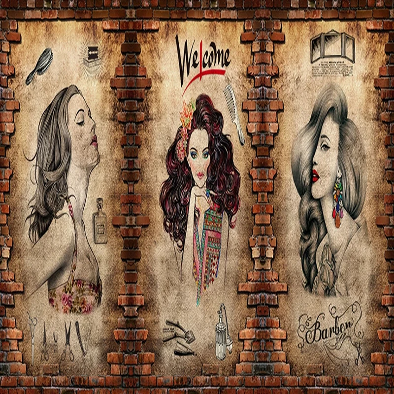 3D Самоклеящиеся водонепроницаемые обои, 3D Парикмахерская, магазин красоты, косметика, кирпичная стена, ретро настенные росписи, 3D наклейки