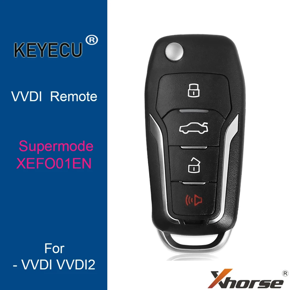 Супер удаленный ключ KEYECU Xhorse XEFO01EN для Ford Style Flip, 4 кнопки, встроенный супер чип