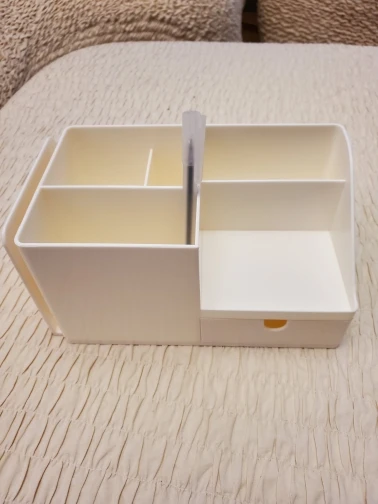 Органайзер-то хороший, вместительный, но упаковка... Уже наверное каждый китаец знает что из себя представляет шайтан-контора Почта России. А они взяли и упаковали просто в бумажную коробочку. Да с нашими почтальонами надо в шивырнадцать слоев пупырки товар оборачивать, да усиливать еще клеткой из арматуры блин, ну а уже потом в бумажную упаковку. Ну и чё, в какой-то момент коробка порвалась и уголок белого пластика органайзера оказался стёсан видимо об пол. И ведь цуко на самом видном месте. Ну да, совсем децл, но абыдно блин, можно же не экономить на упаковке настолько по-жлобски?