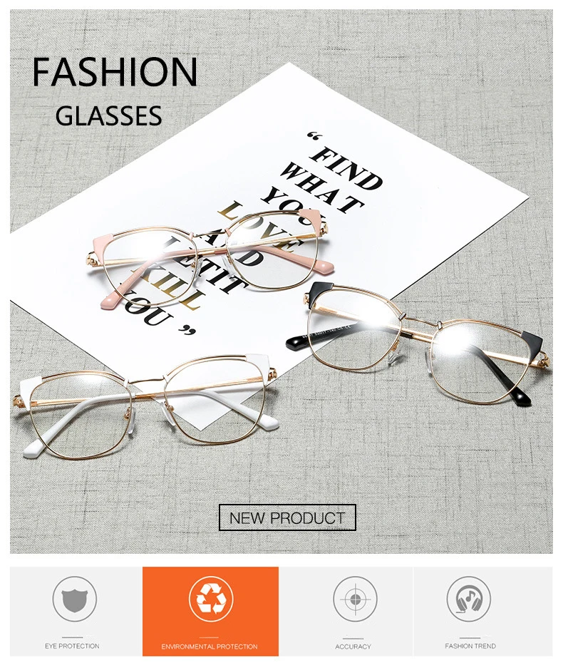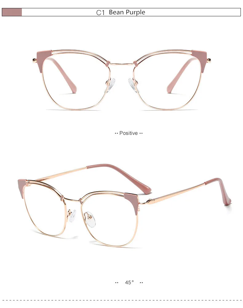 Женские очки кошачий глаз, металлическая оправа, модные очки по рец...