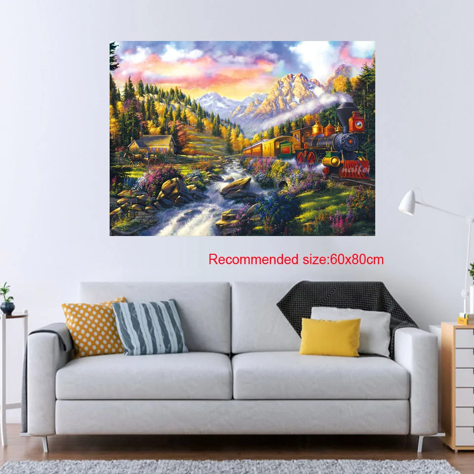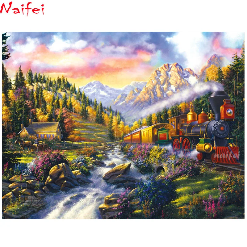 Полный DIY 5D алмазная картина с изображением поезда Вышивка крестом квадратная Алмазная вышивка поток узоры круглые стразы Алмазная мозаика