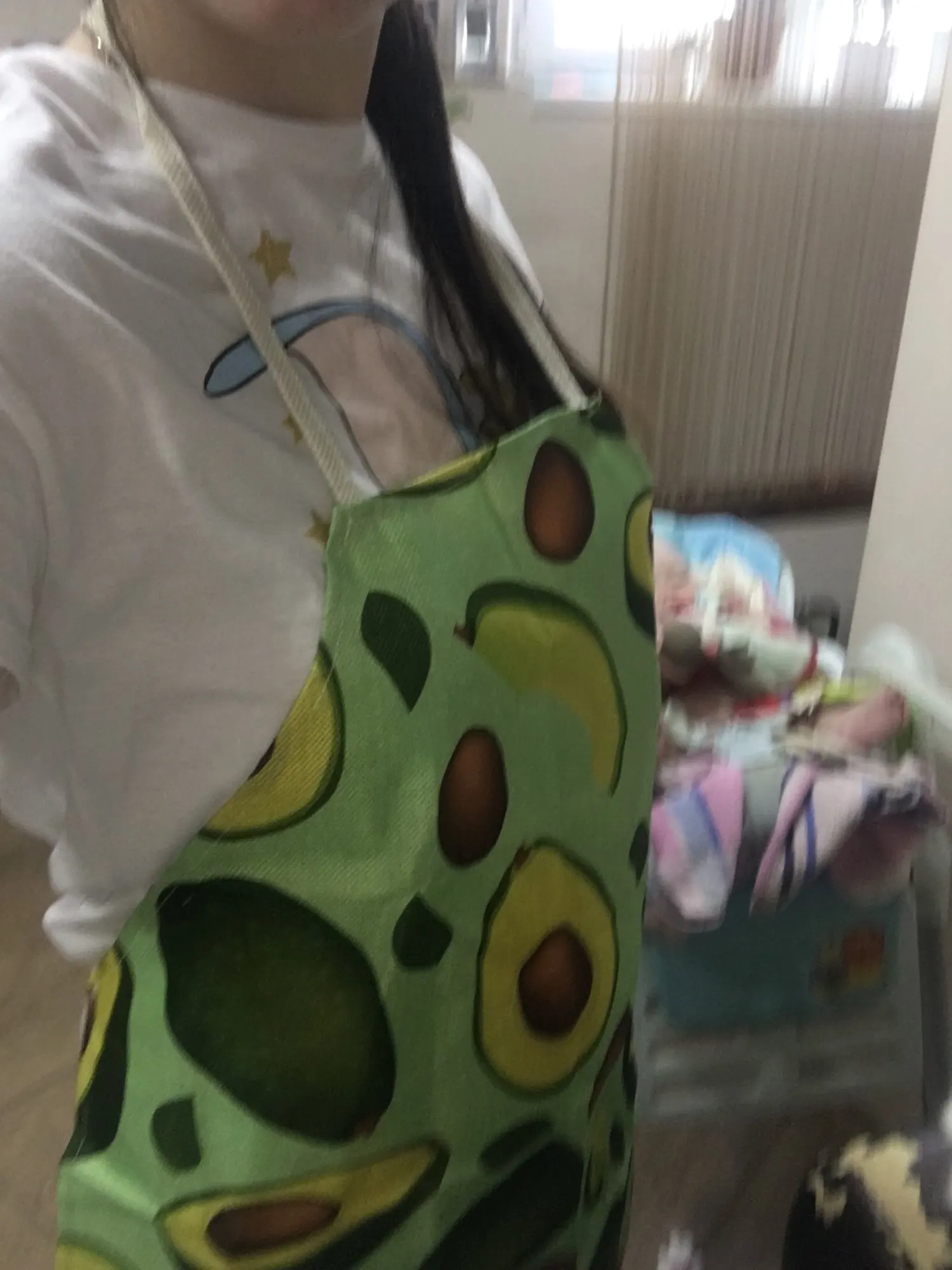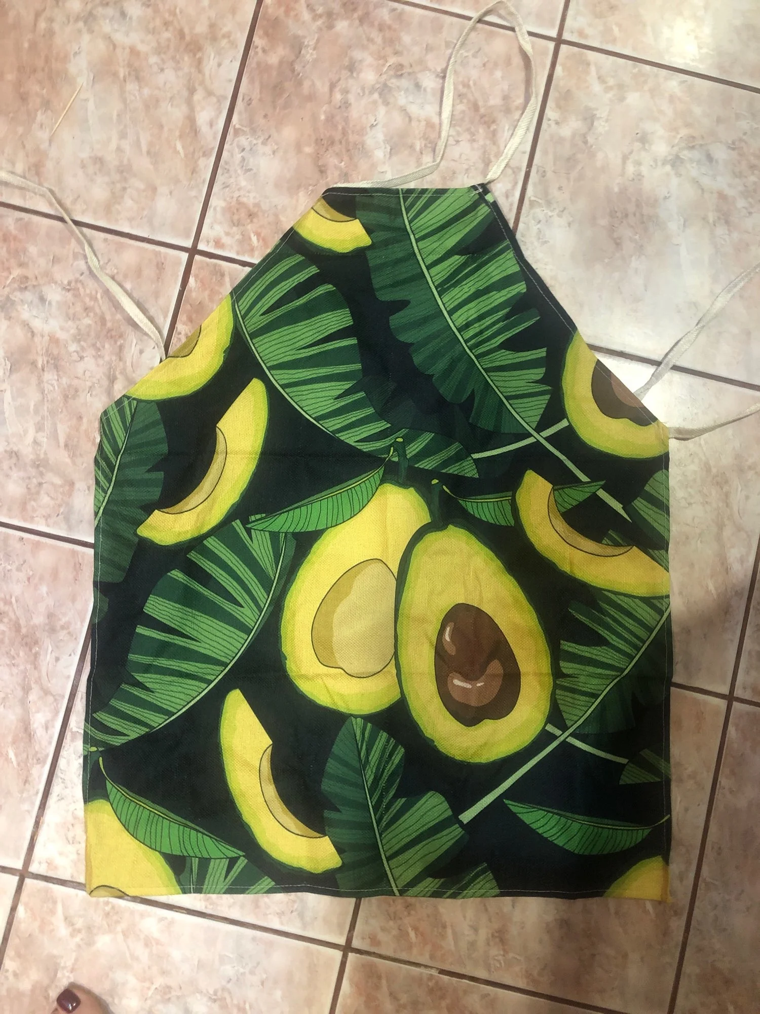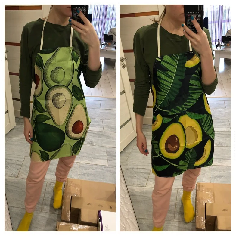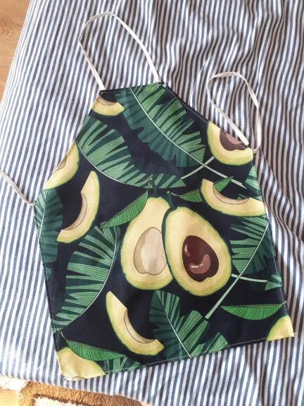Я совсем не доволен, предполагается, что фартук должен быть водонепроницаемым, но это не так, это просто ткань, на самом деле она мне не подойдет, но, по крайней мере, авокаты милые