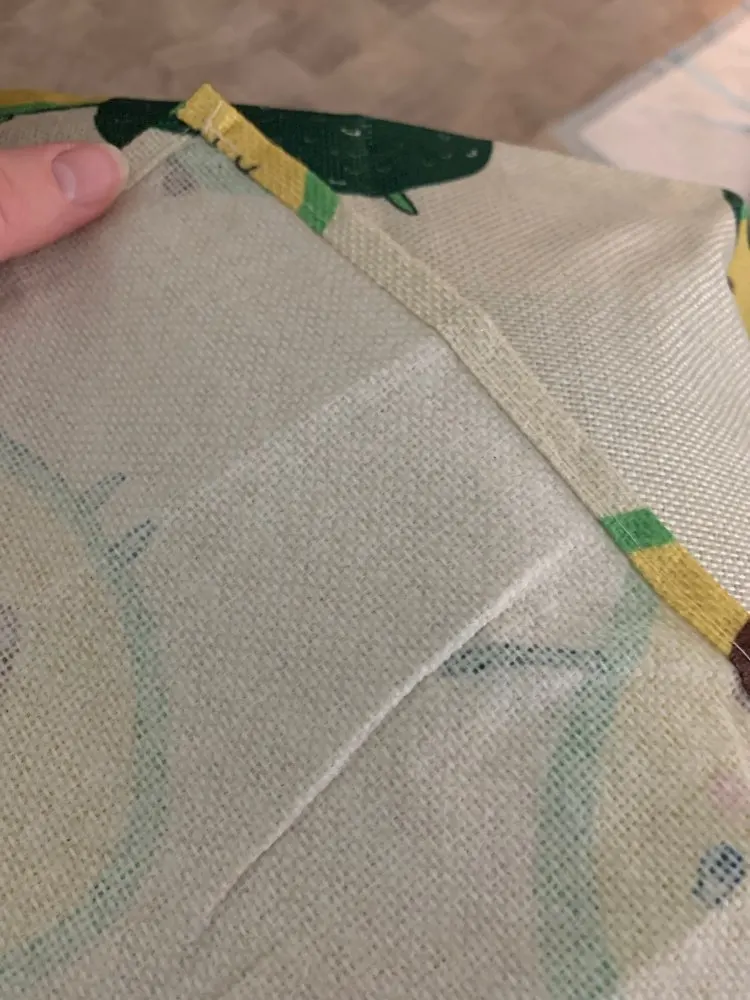 Это не хлопок. Изготовлено из синтетического пластика (например, из многоразового материала). Не как описано. Принт приятный и яркий, но не доволен материалом. Фартук имеет меньший размер.