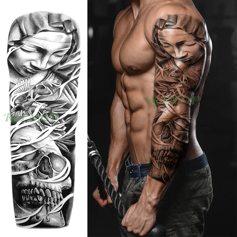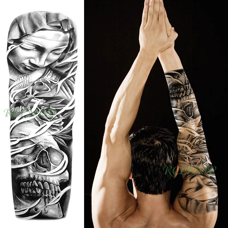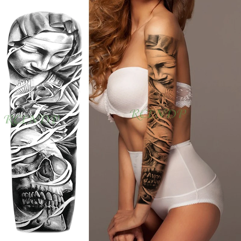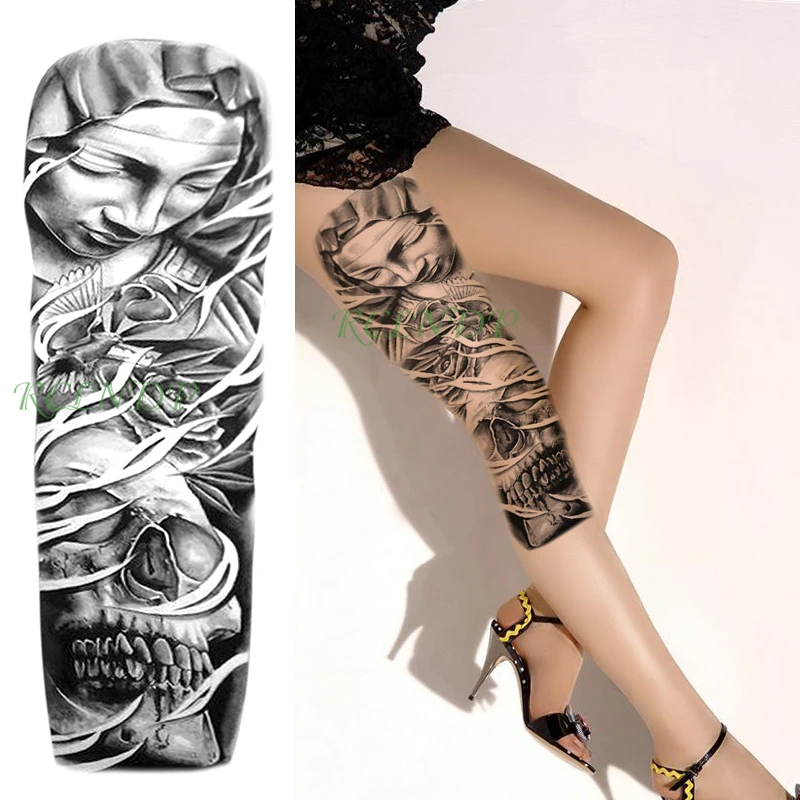 Водонепроницаемая Временная тату-наклейка Молящиеся девичьи и черепа, темная творческая личность поддельные тату флэш-тату для мужчин и женщин