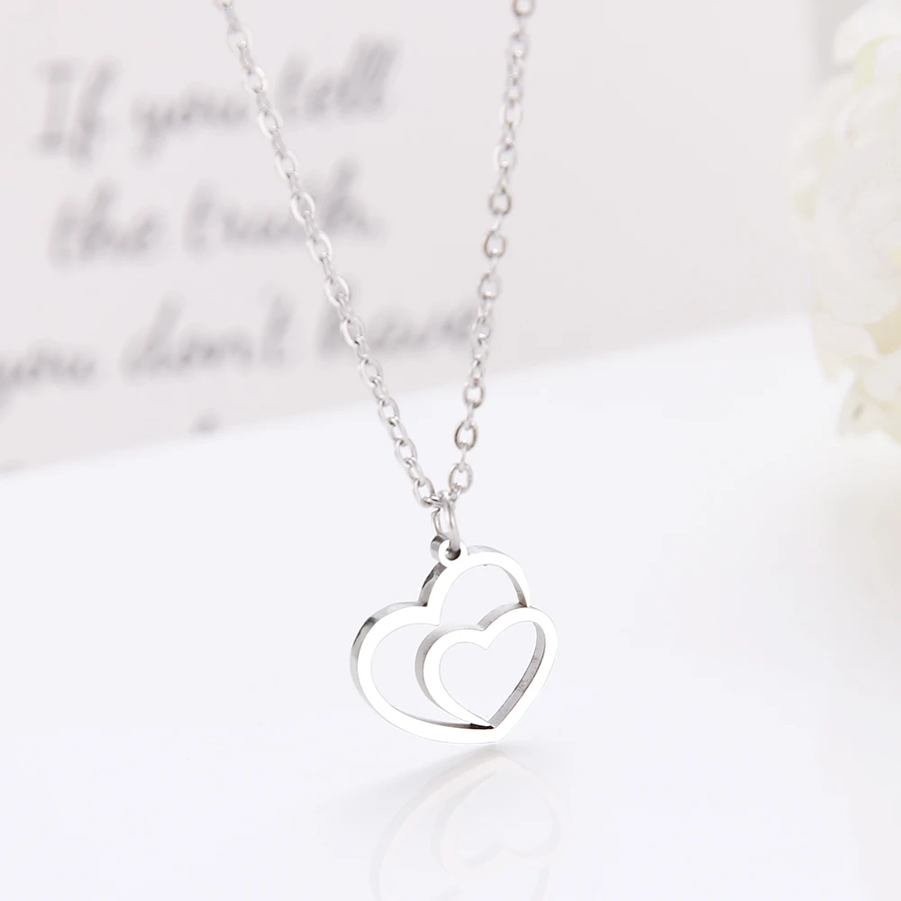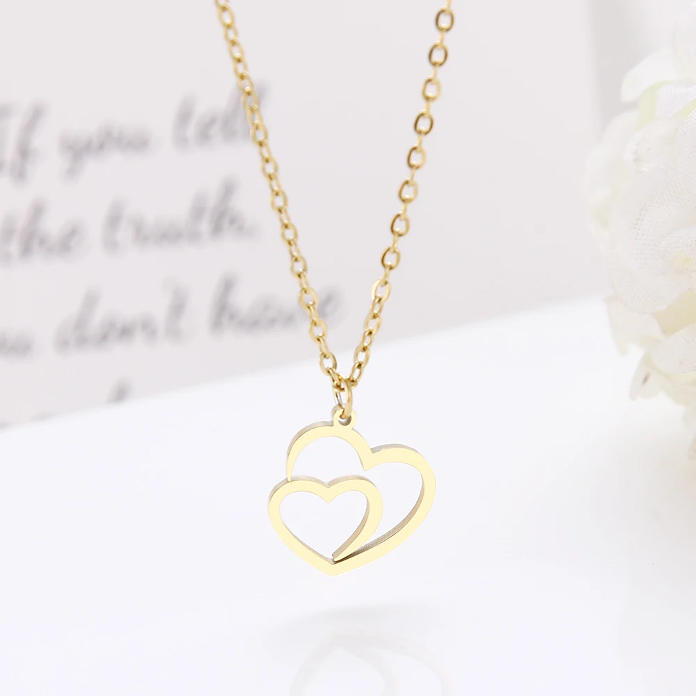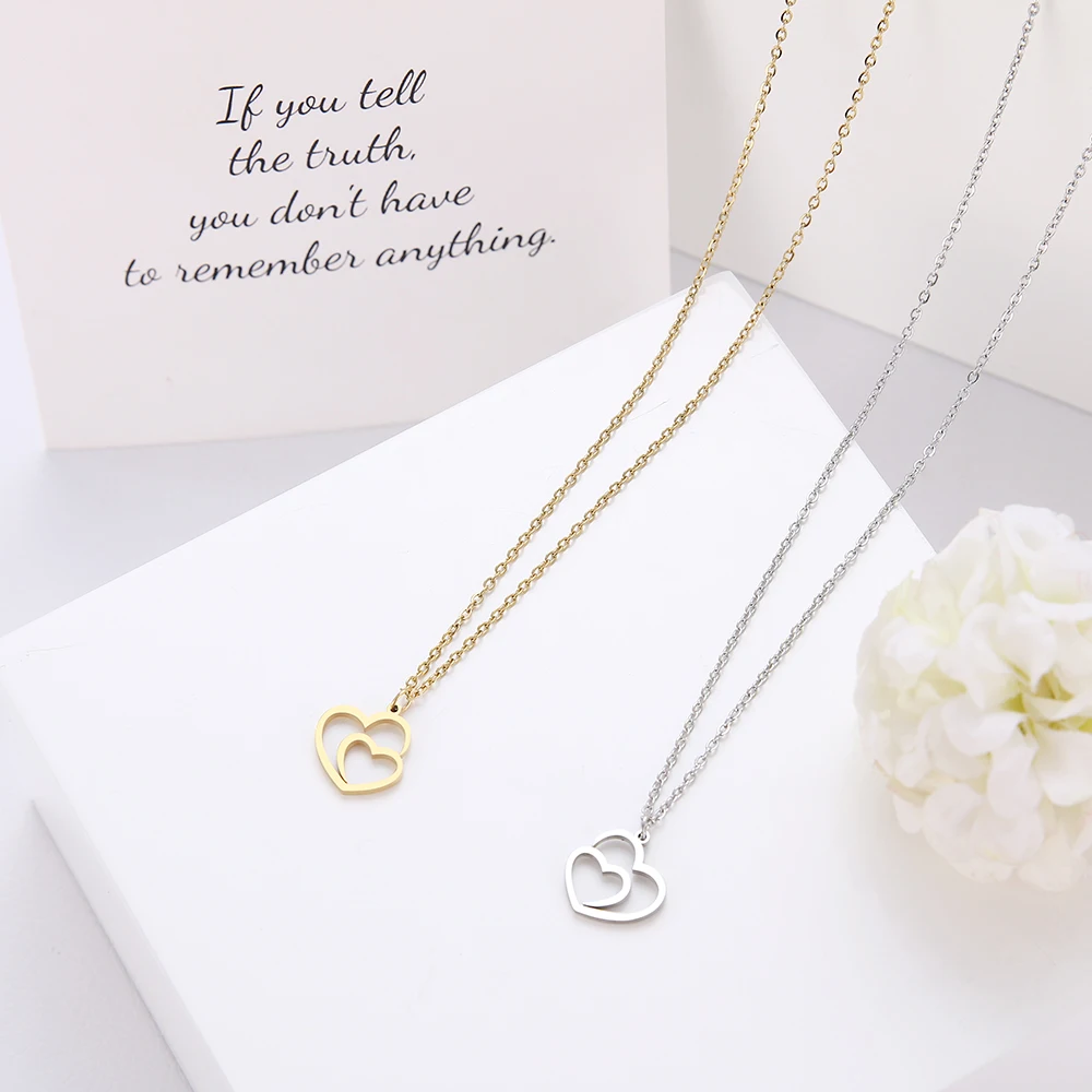 DOTIFI, ожерелье из нержавеющей стали, Двойное сердце, золото и серебро, подвеска, ожерелье, Помолвочное ювелирное изделие D85