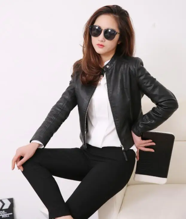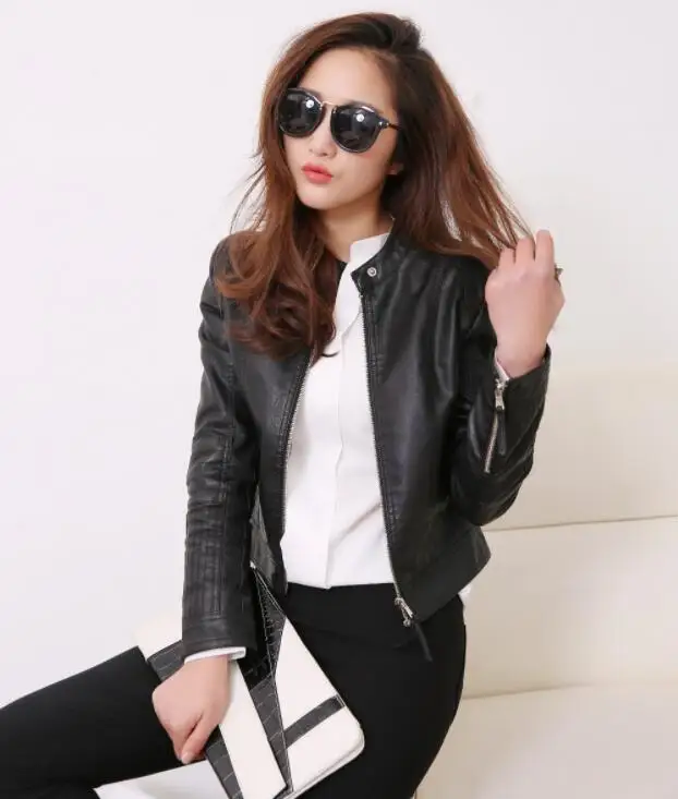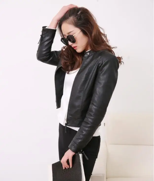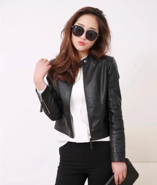 Женская Байкерская кожаная куртка, облегающая байкерская куртка из искусственной кожи в европейском стиле, базовая верхняя одежда для осени, 2019