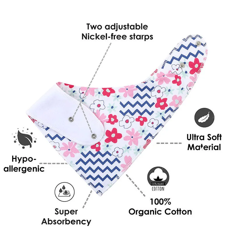 Бандана нагрудники имеют 2 шага регулируемых защелок подходят для растущего ребенка и малыша возраста от 3 до 24 месяцев.