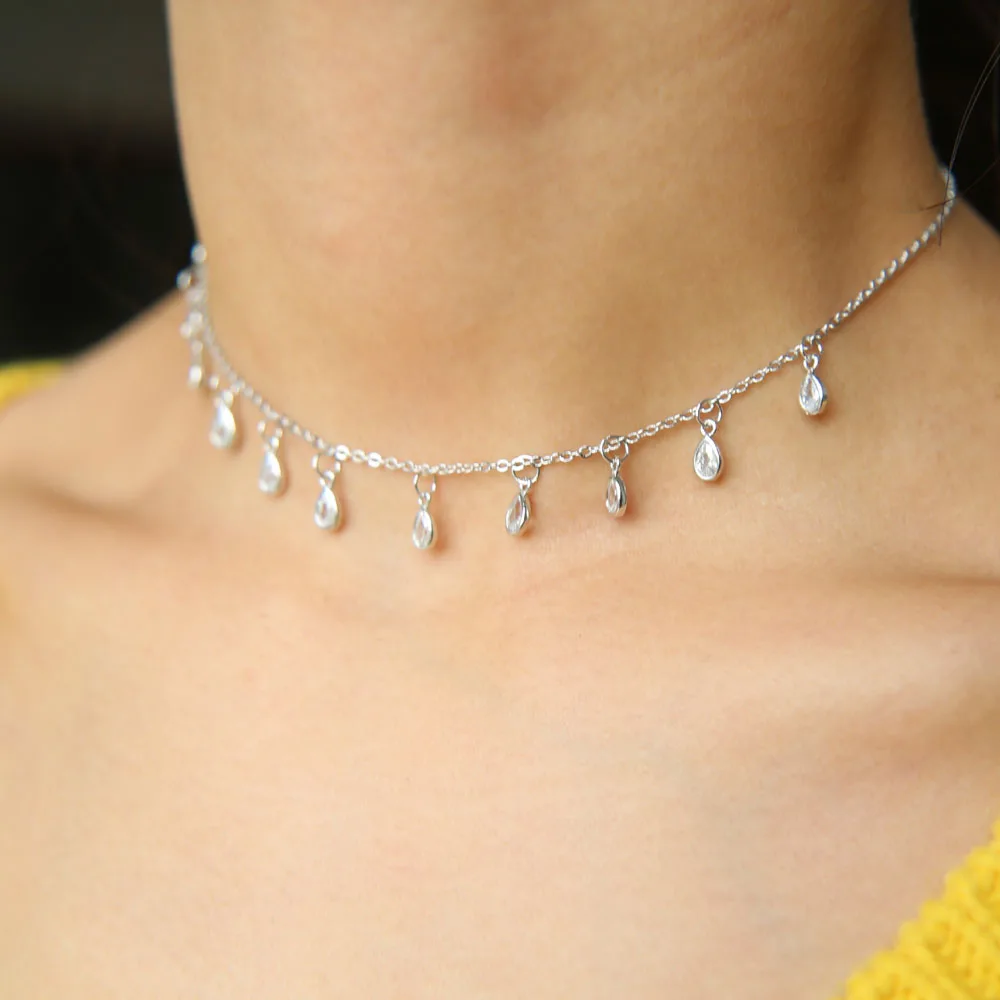 Женское Ожерелье-чокер rainbow cz, простое очаровательное ювелирное изделие из стерлингового серебра 925 пробы с фианитами, классическое ожерелье-чокер