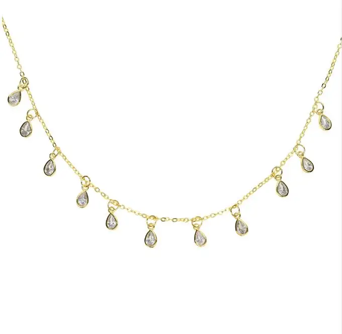 2021 весеннее нежное ожерелье проложило Cz капля мини очарование Изысканная Золотая Цвет 33 + 7 см колье ожерелье кулон для влюбленных свадебные подарки