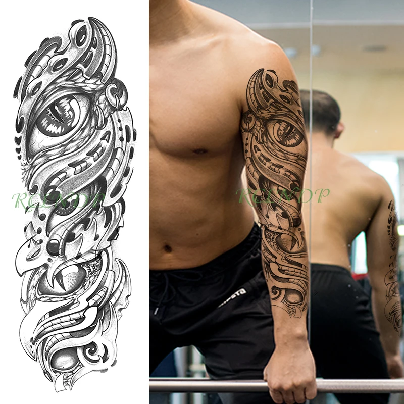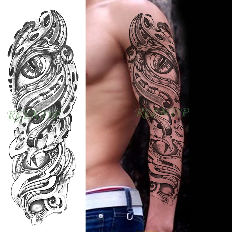Водостойкая временная татуировка-наклейка, механический Тотем с большими глазами, черная поддельная татуировка на всю руку, флэш-рукав, тату для мужчин и женщин
