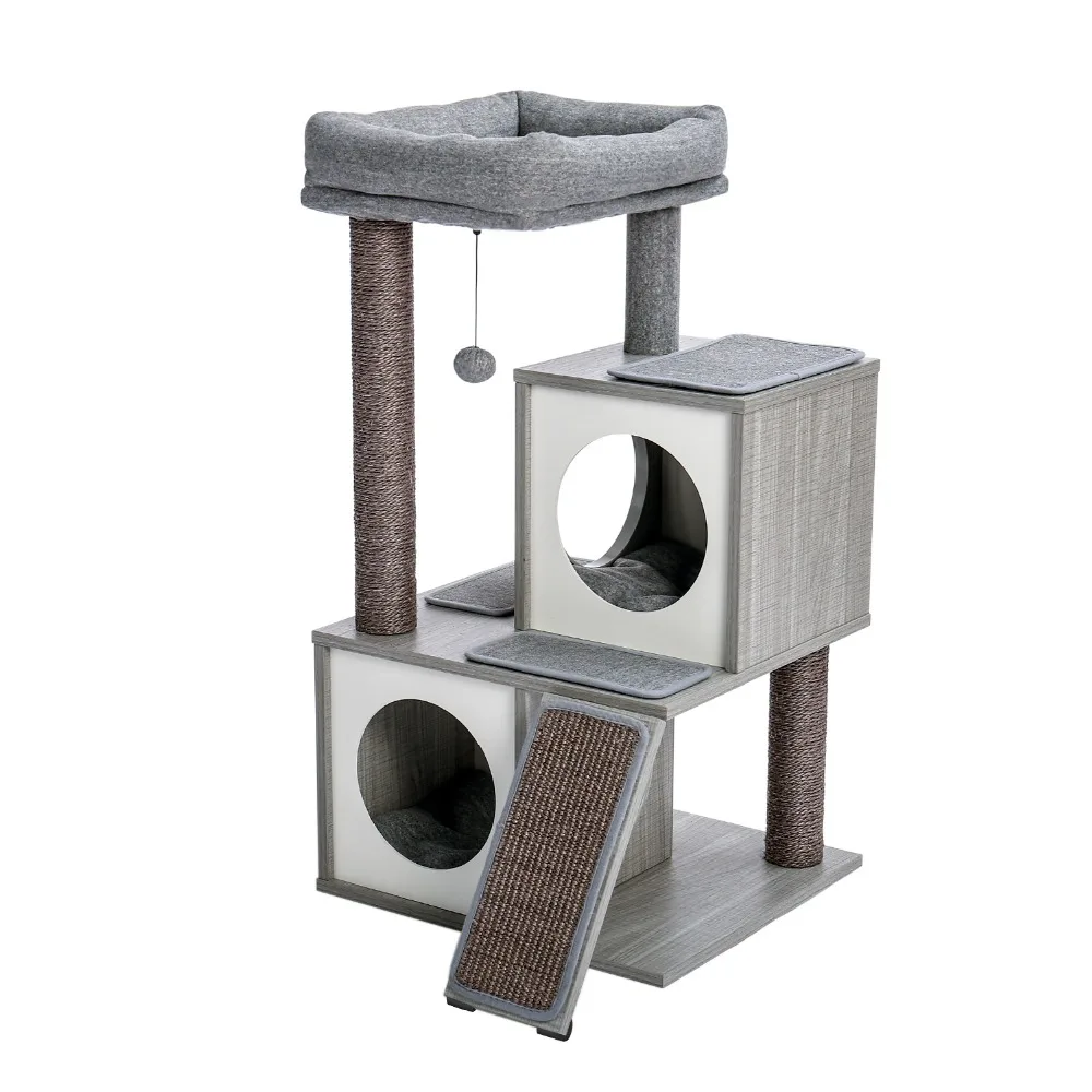 ·Чистое и стильное покрытие: В отличие от традиционного кошачьего дерева, эта современная кошачья башня покрыта полиэстером хорошего качества и серым деревянным зерном, что делает ее более чистой, роскошной и удобной в уходе. Такой красивый и красивый вид может подойти ко всем типам жилого пространства. Независимо от того, находитесь ли вы в общежитии, квартире или доме, это кошачье дерево может быть идеально интегрировано с мебелью.