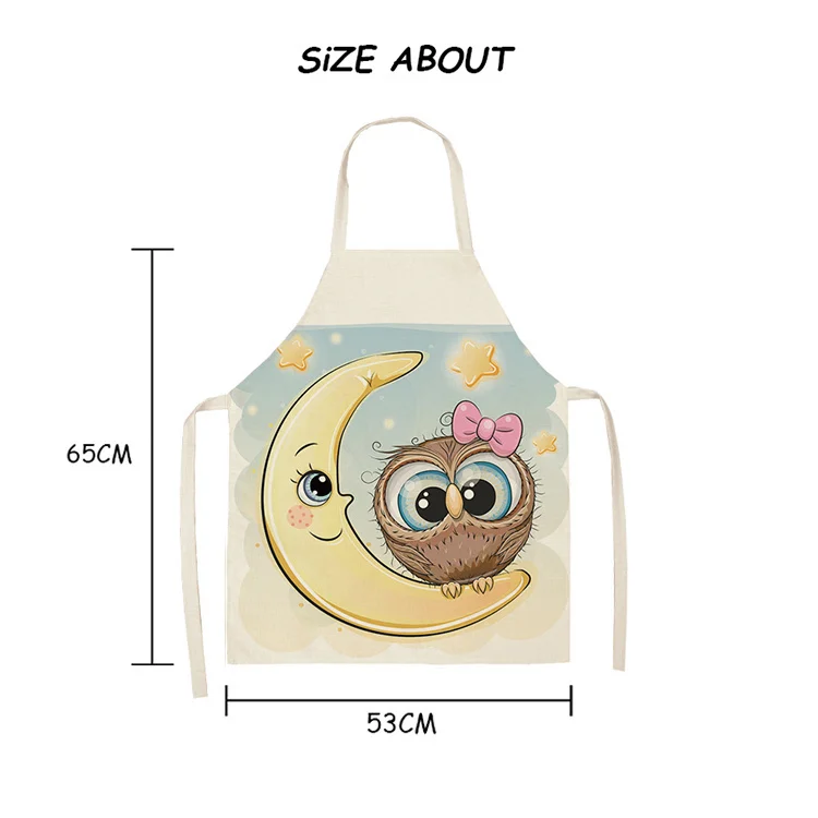 Фартуки из хлопковый материал с печатным рисунком льна с изображением совы, цветов, 53 х65 см, женские фартуки для дома, кулинарии, нагрудники для запекания на талии, 46257