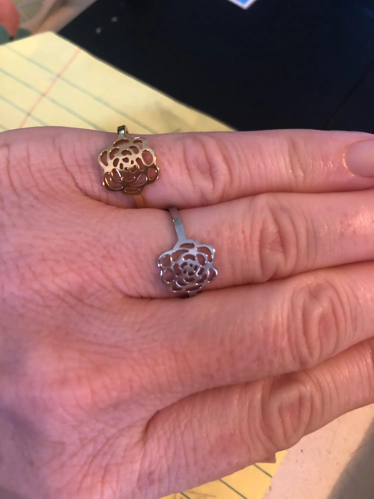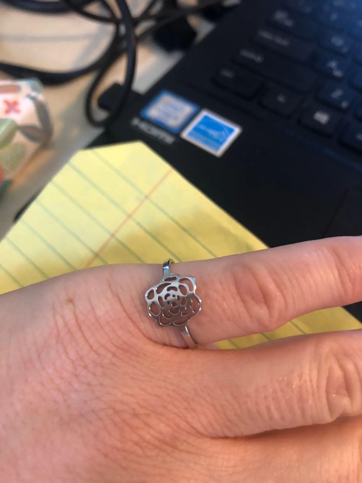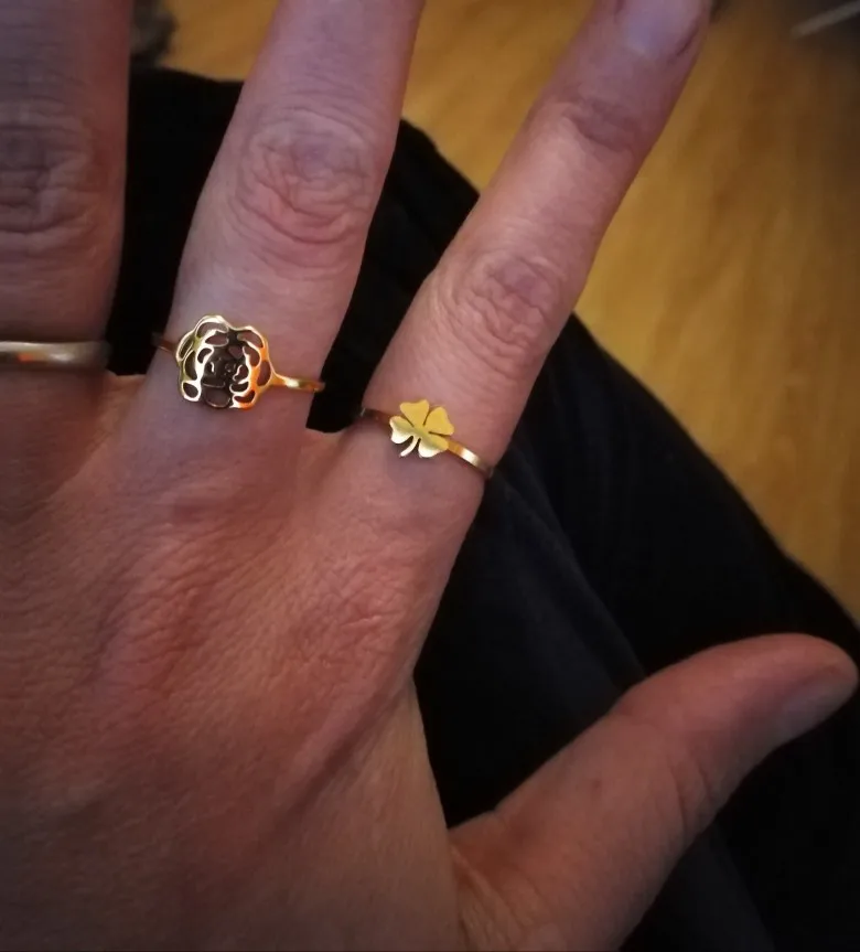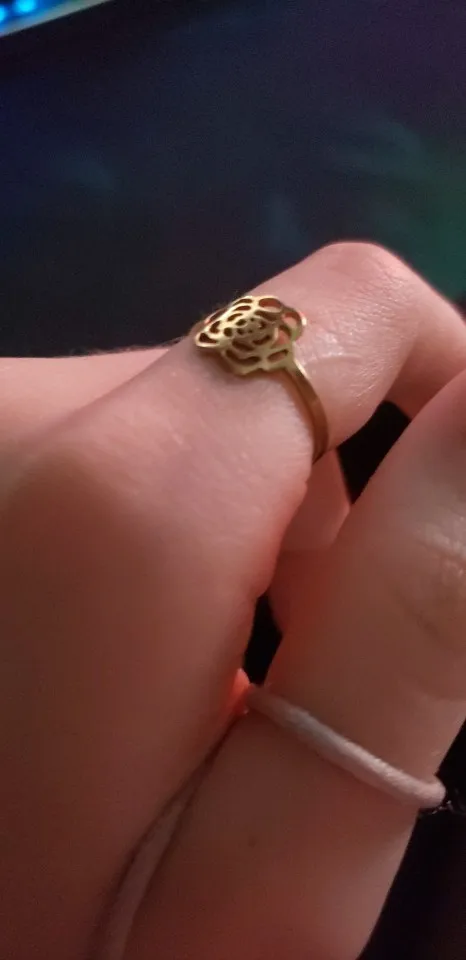 Это действительно красиво, и я был так рад, что он подходит на моих пальцах! И в качестве дешевого кольца я был еще более удивлен, что это не дает мне зеленого пятна, которые обычно дают мне самые дешевые кольца!