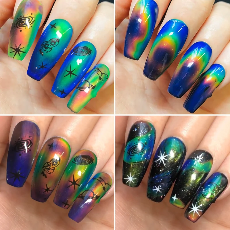 1 г термохромовый жидкий кристалл, меняющий Цвет Гель-лак, отмачиваемый, для нейл-арта, меняющий гель-краску, черная основа, УФ-лампа