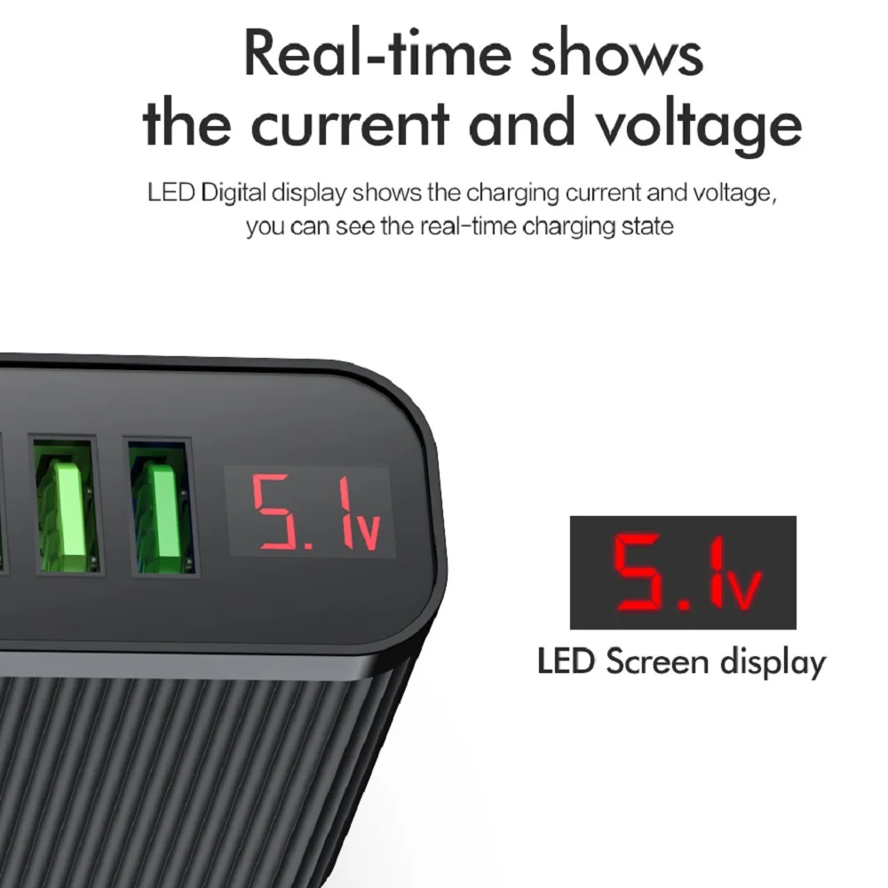 Зарядное устройство для телефона с цифровым дисплеем, 3 USB-порта