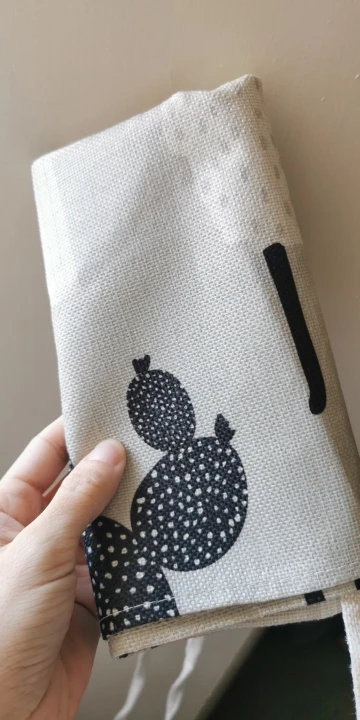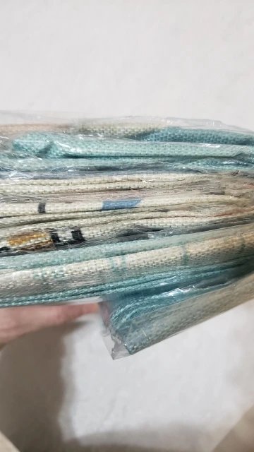 Жене понравилось, плотная рогожка, пропитана какой то синтетикой, вода невпитывается. В общем на 5 из 5