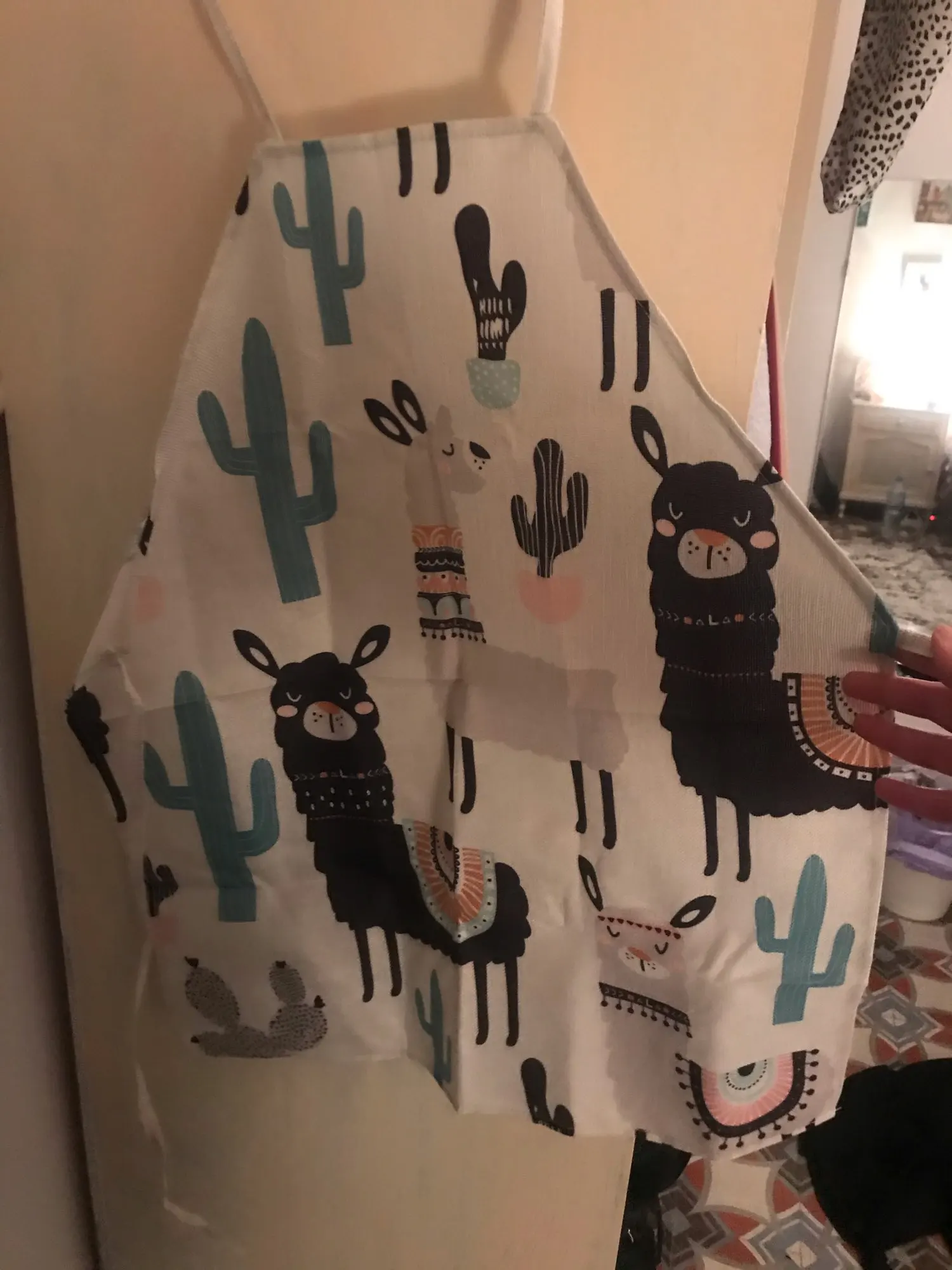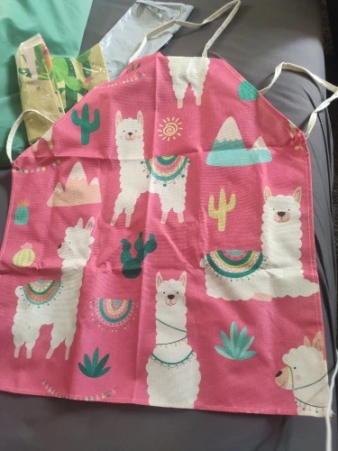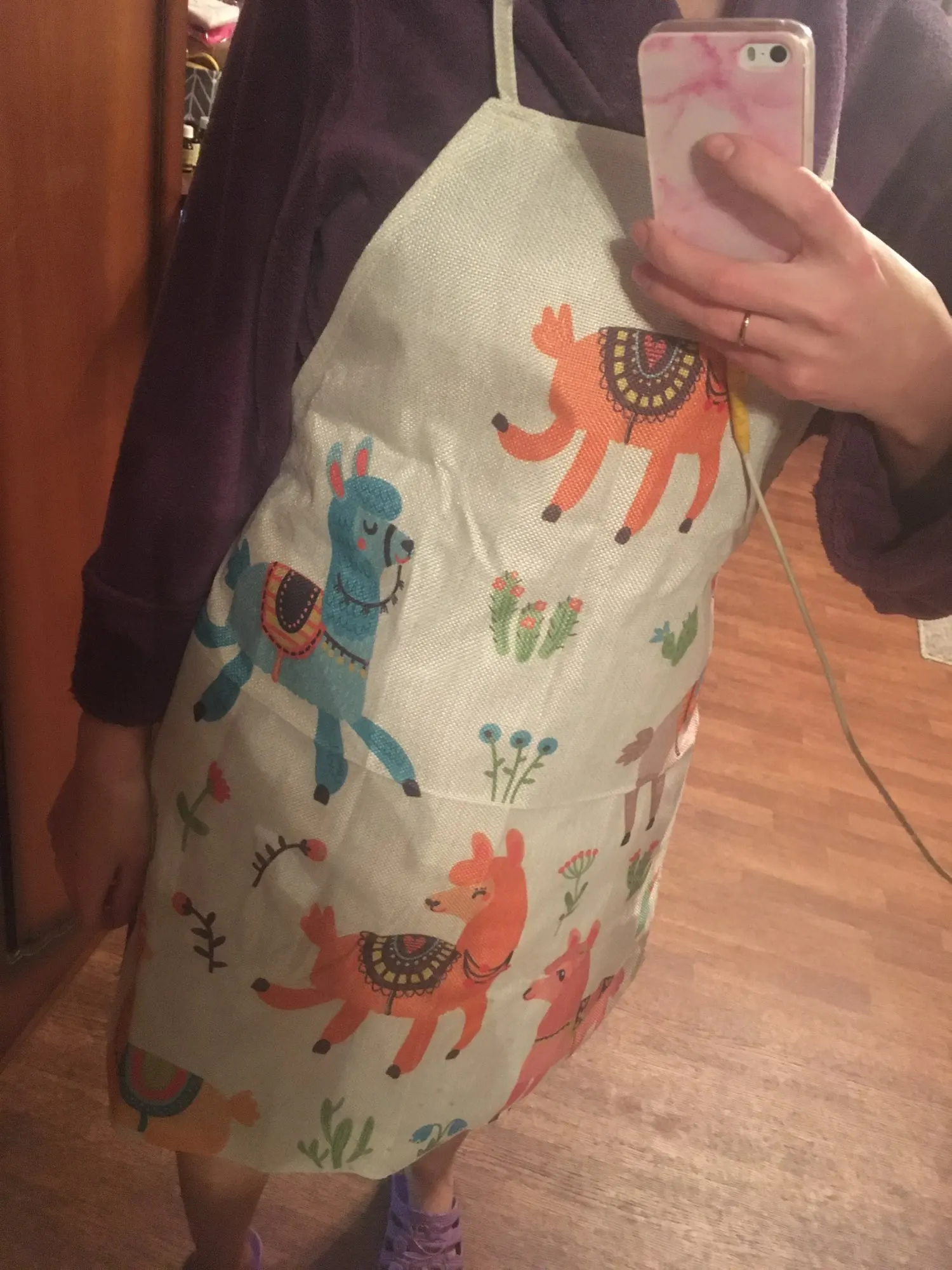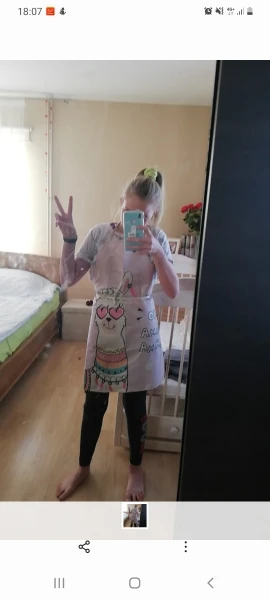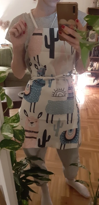 Дизайн выглядит так мило! И сам фартук хорошего качества. Не слишком маленький, как многие другие на Али, что я почти не могу завязать вокруг талии, как женщина большого размера. Этот, который я могу завязать вокруг талии. Рекомендовано.