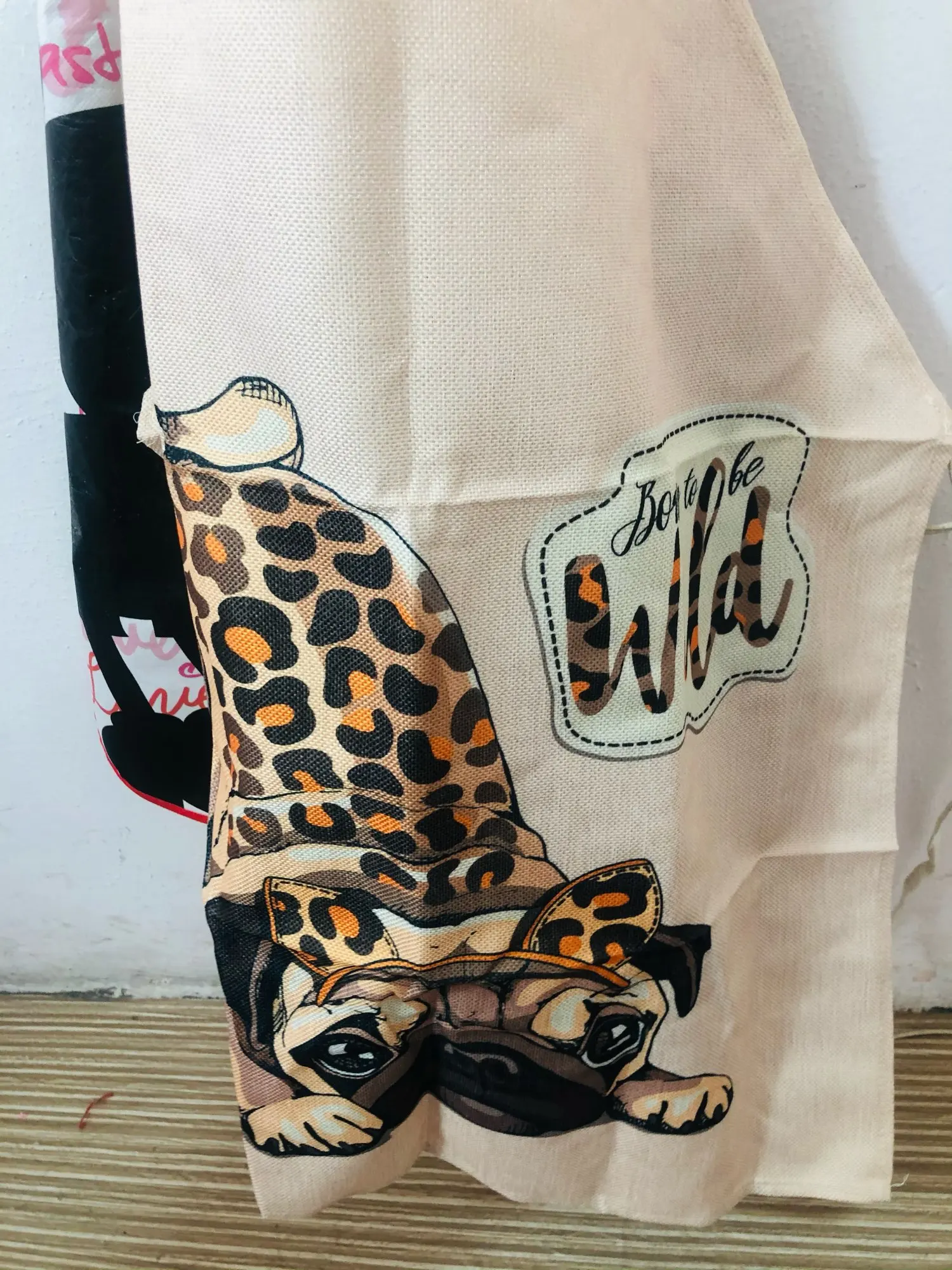 Хлопковый нагрудник без рукавов с принтом в виде собаки, мопса, 53 х65 см, фартуки кухонный фартук, для женщин, для дома, кулинарии, запекания на поясе, фартук WQL0152