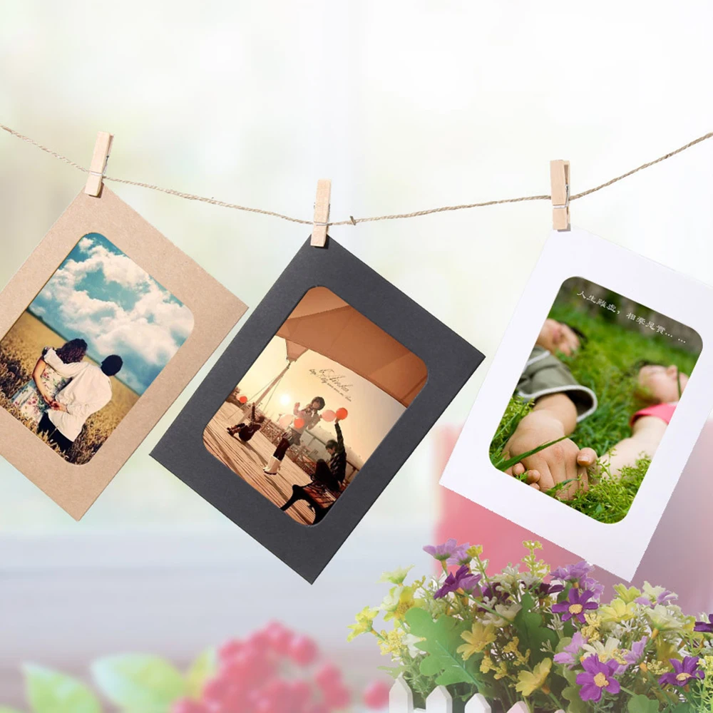 Бумажная фоторамка 10 шт., набор фоторамок из крафтовой бумаги с деревянными зажимами и джутовым шпагатом, домашний декор, белаячернаякоричневая, 3 размера