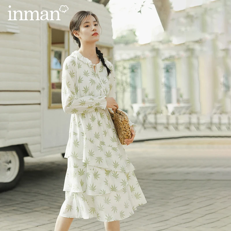 Женское платье с длинным рукавом INMAN, весеннее платье с цветочным принтом и круглым воротником