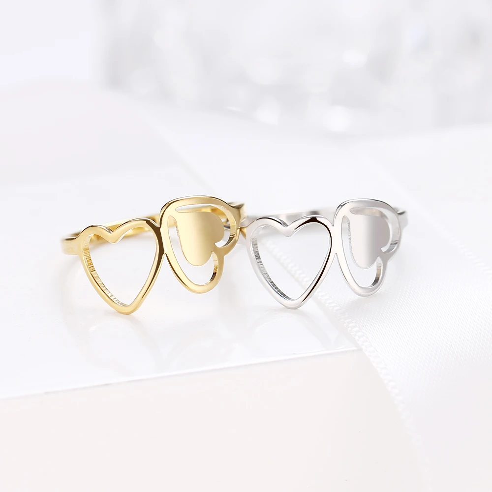 DOTIFI для женщин кольца Мода Двойное сердце Полые Любовь Свадьба 316L нержавеющая сталь обручальное кольцо Шарм ювелирные изделия E39